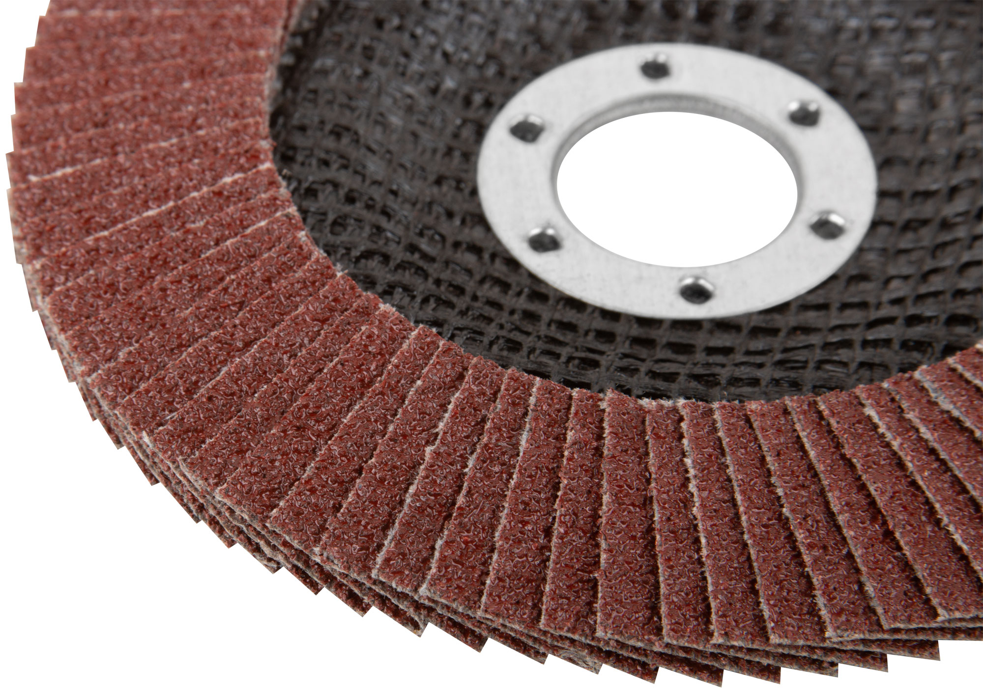 Тип 2 (Конический). Для обработки различных материалов. Используется с УШМ. 80 лепестков. Лепестки расположены под углом. Посадочный диаметр 22,2 мм. Материал: полимерная основа, образивный слой-оксид алюминия.