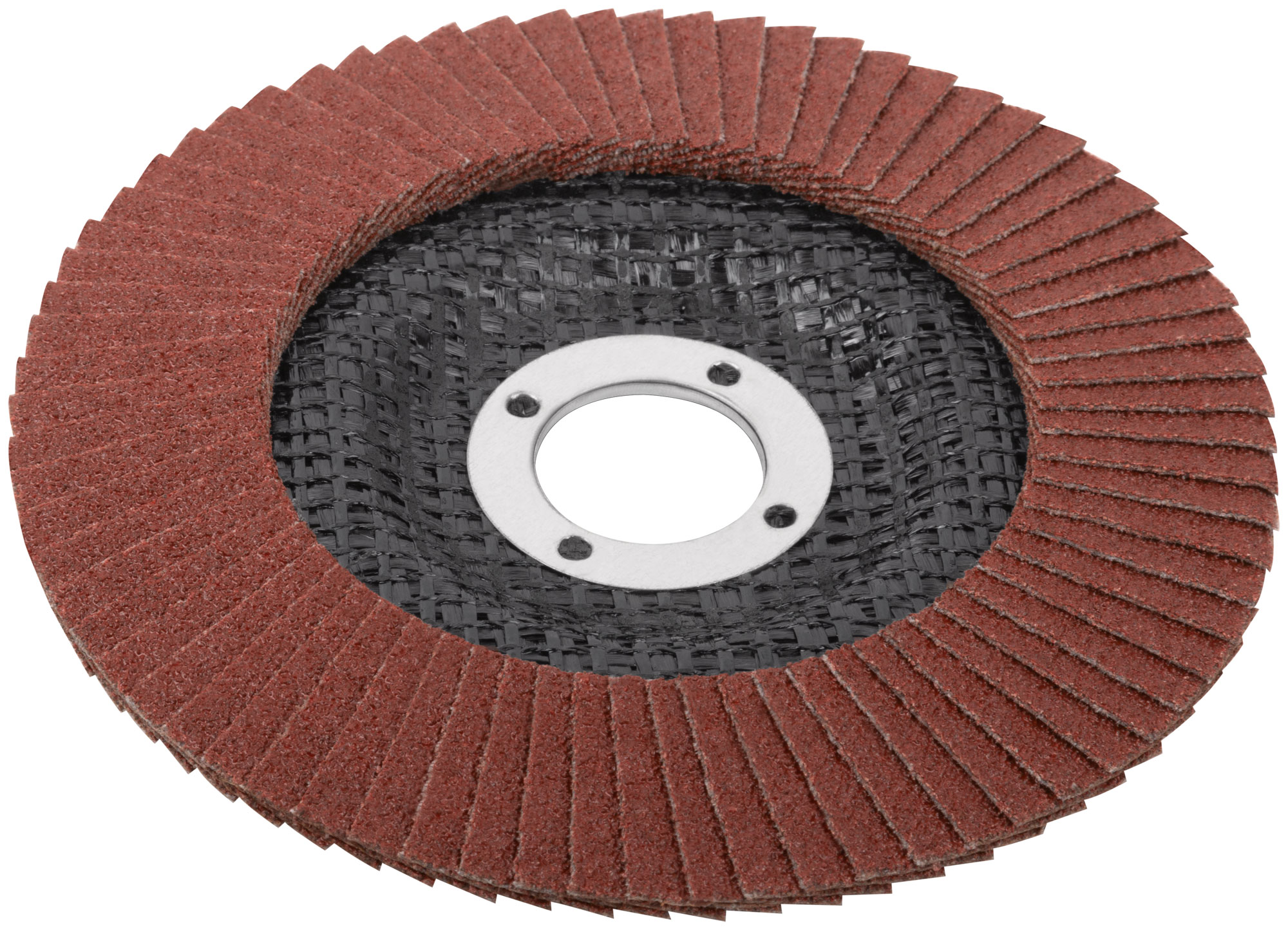 Предназначен для УШМ, посадка 22,23мм. Наполняемость круга 72 лепестка (25х15мм) с углом наклона 10 градусов, что позволяет увеличить площадь контакта с поверхностью. Используется для обработки различных поверхностей: металл, дерево, пластик. Материал: инструментальная сталь, тканевая основа, абразивный материал.