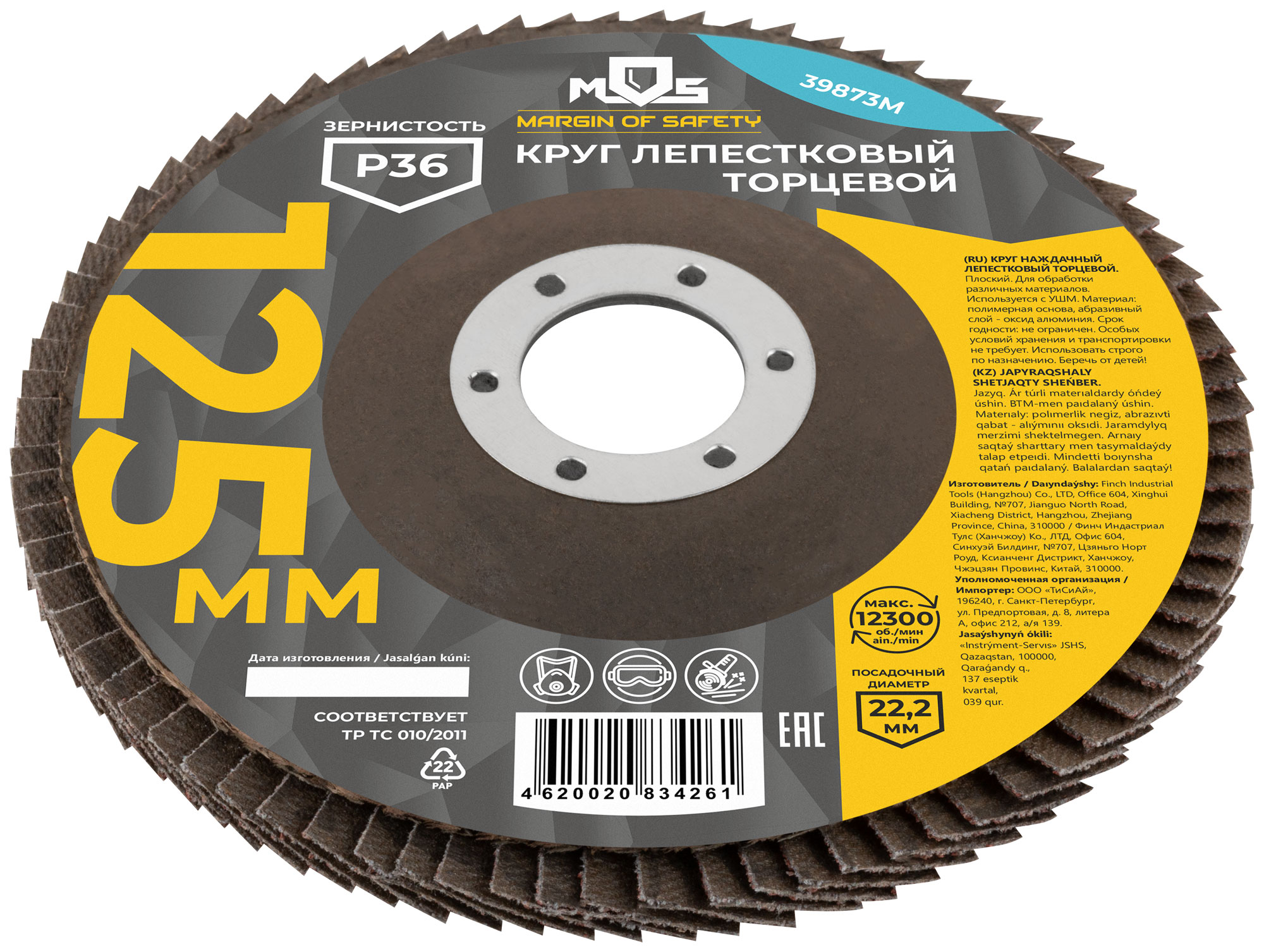 Тип 1 (Плоский). 125 х 22,2 мм. Для обработки различных материалов. Используется с УШМ. 80 лепестков. Материал: полимерная основа, абразивный слой - оксид алюминия.