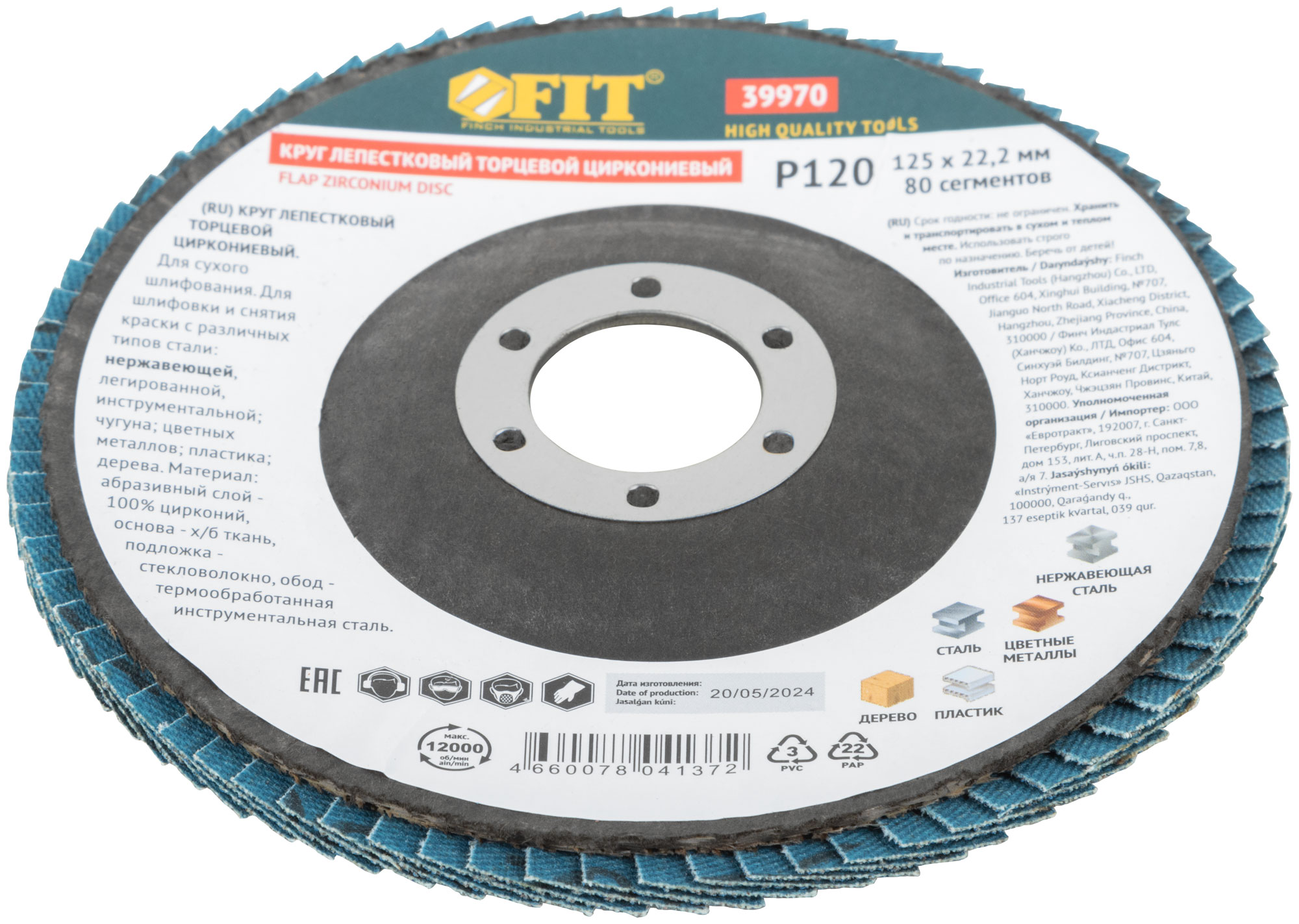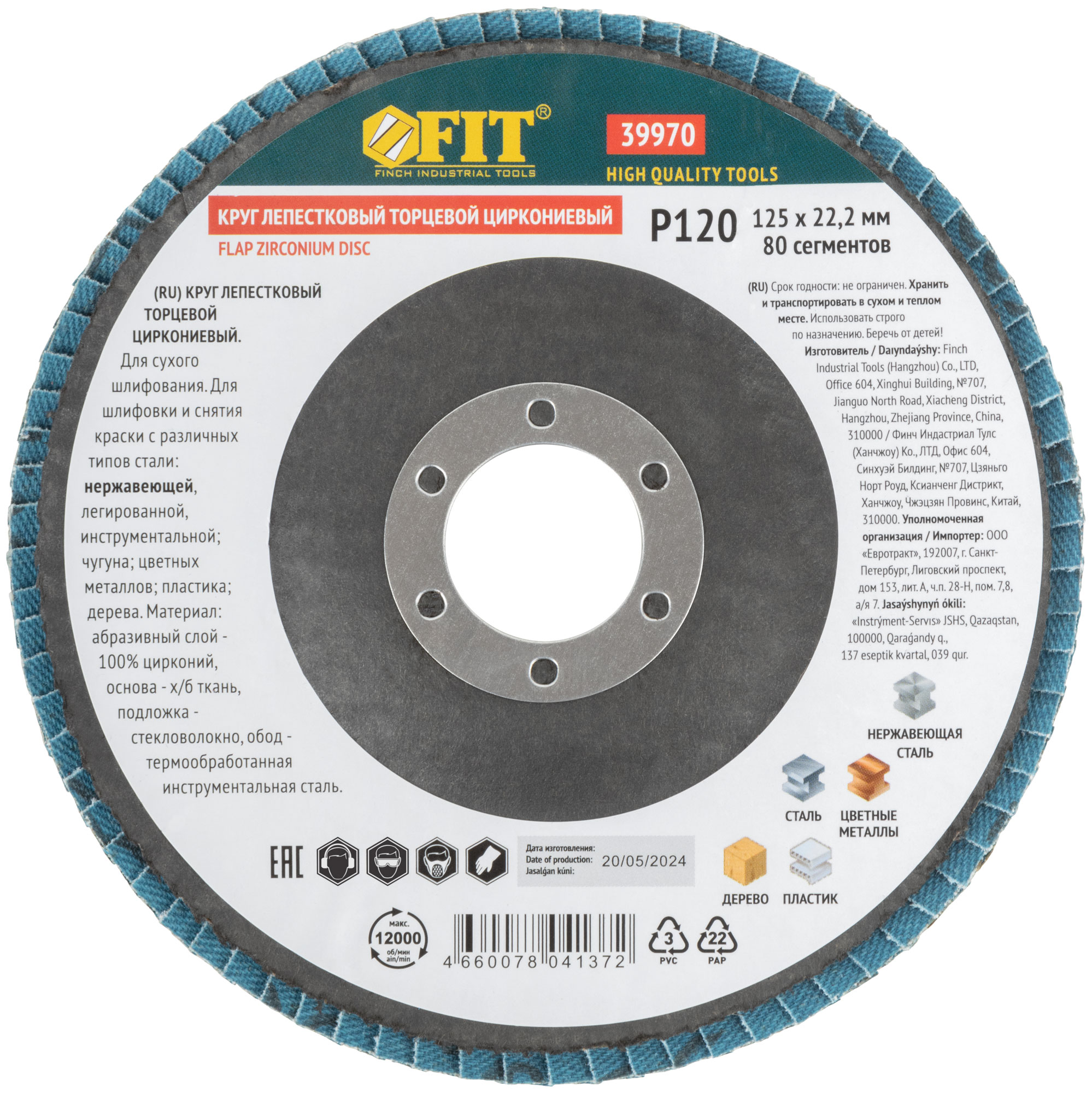 Круг лепестковый торцевой циркониевый, 125 мм Р 120