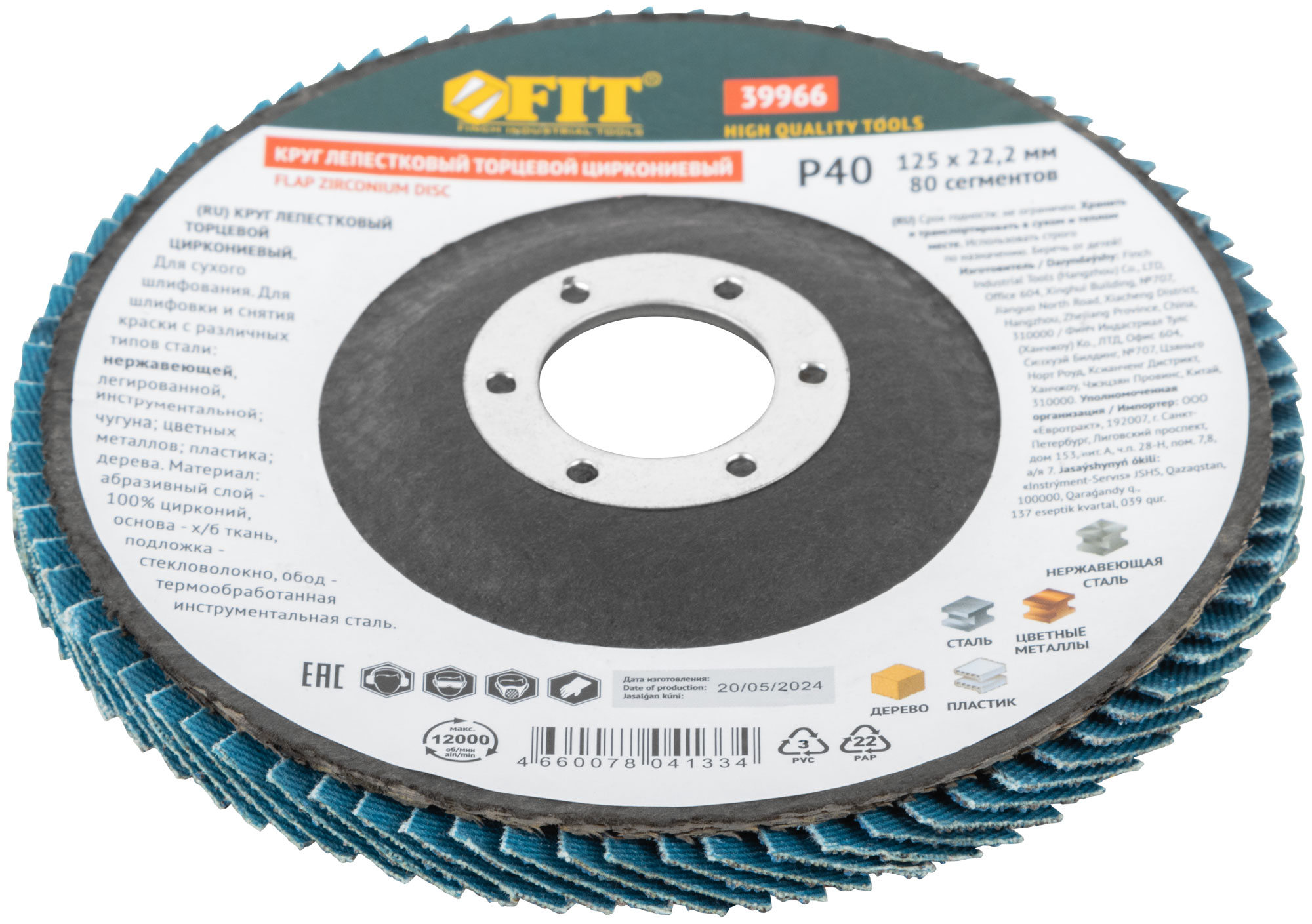 Круг лепестковый торцевой циркониевый, 125 мм Р 40