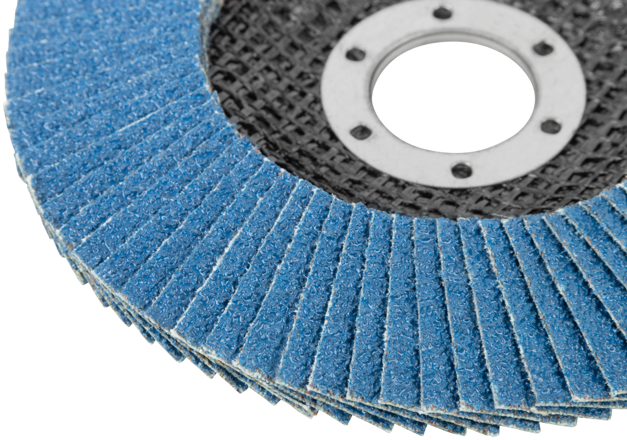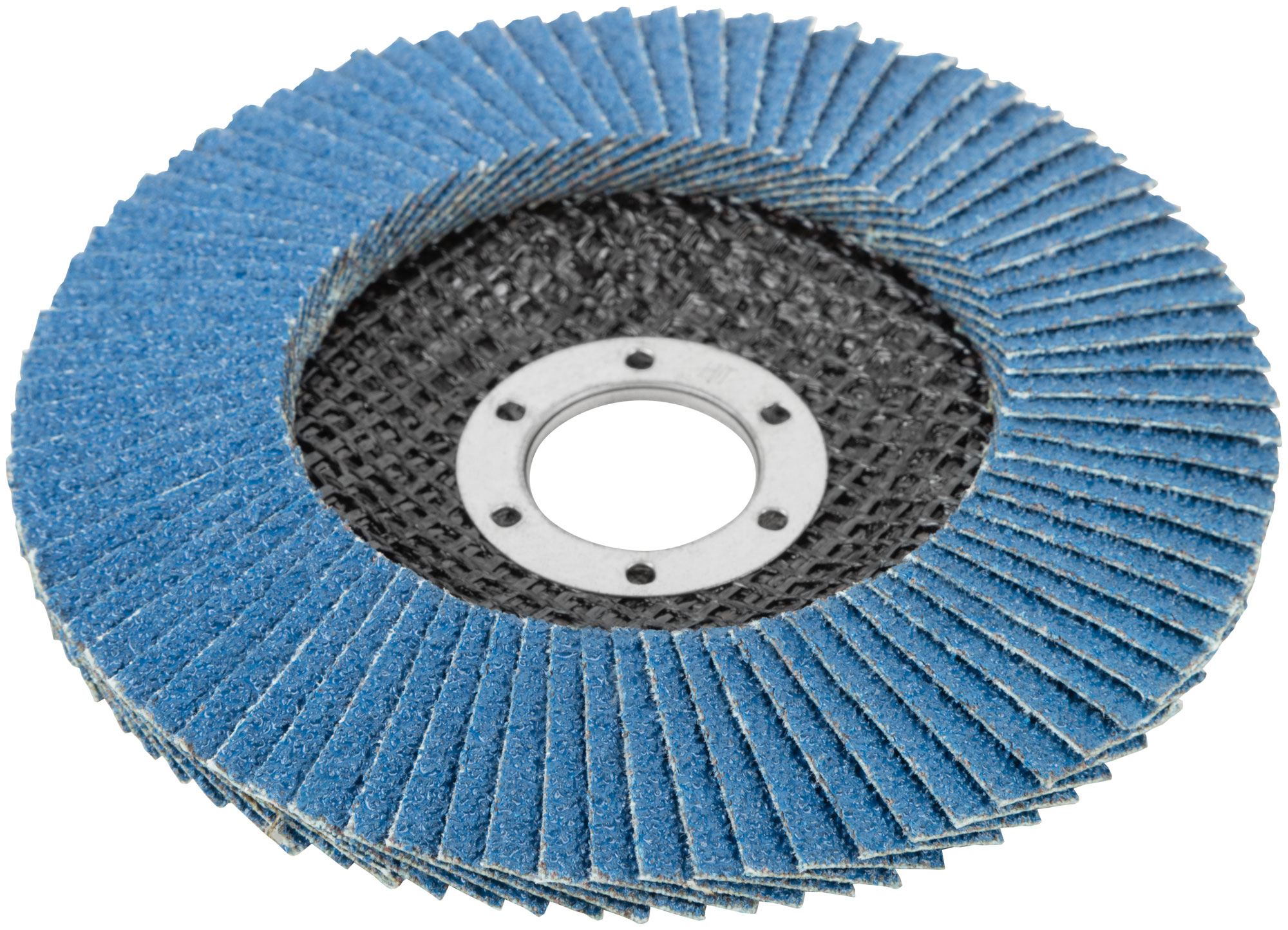Тип 2 (Конический). 80 лепестков. (28 х 16 мм). Для УШМ. Посадочный диаметр 22,2 мм. Для сухого шлифования и снятия краски с различных типовстали: нержавеющей, легированной, инструментальной; чугуна; цветных металлов; пластика; дерева. Материал: абразивный слой - 100% цирконий, основа - х/б ткань, подложка - стекловолокно, обод - термообработанная инструментальная сталь.