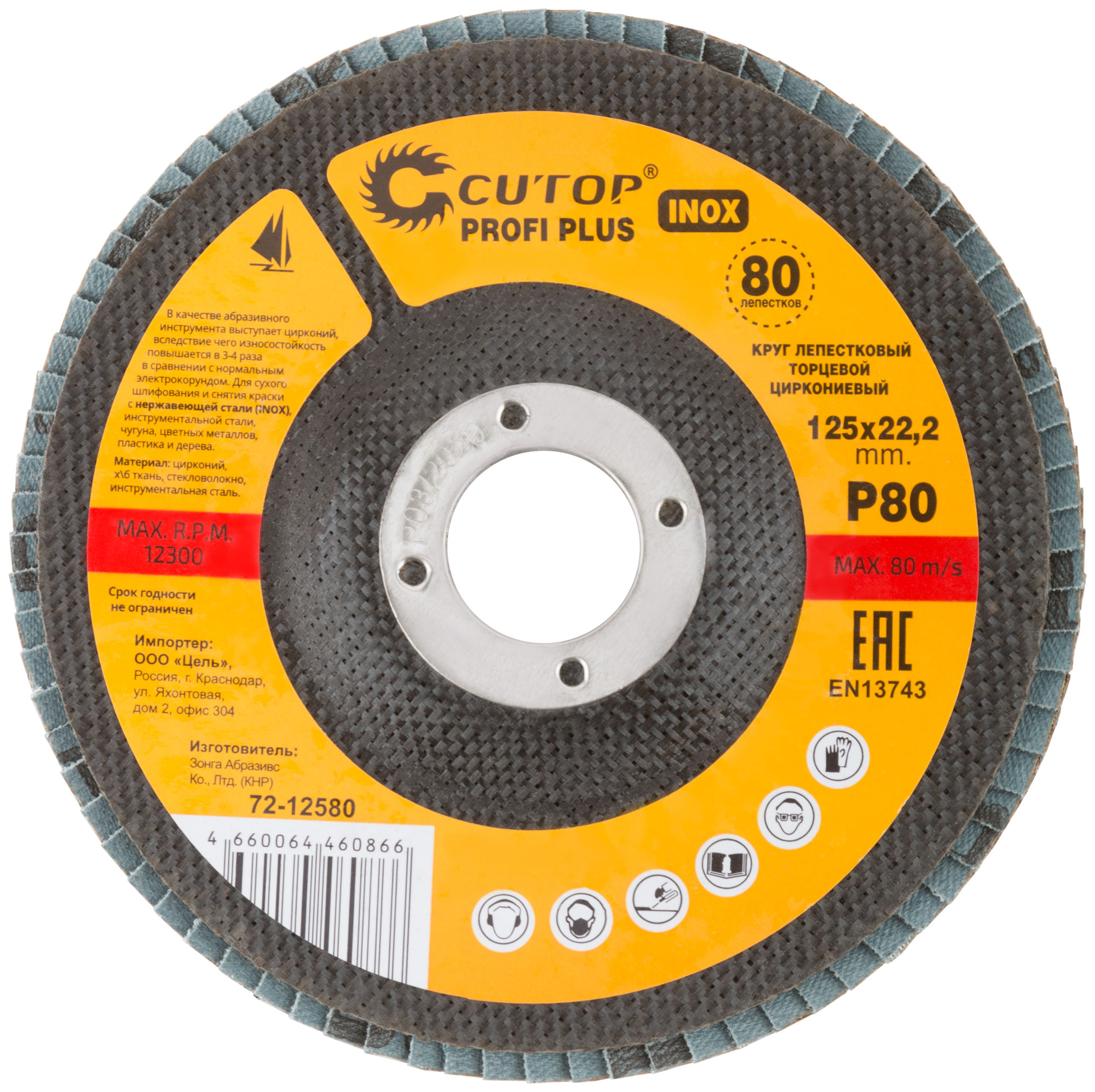 Круг лепестковый торцевой циркониевый Cutop Profi Plus (80 лепестков): 125 х 22,2 мм, Р80