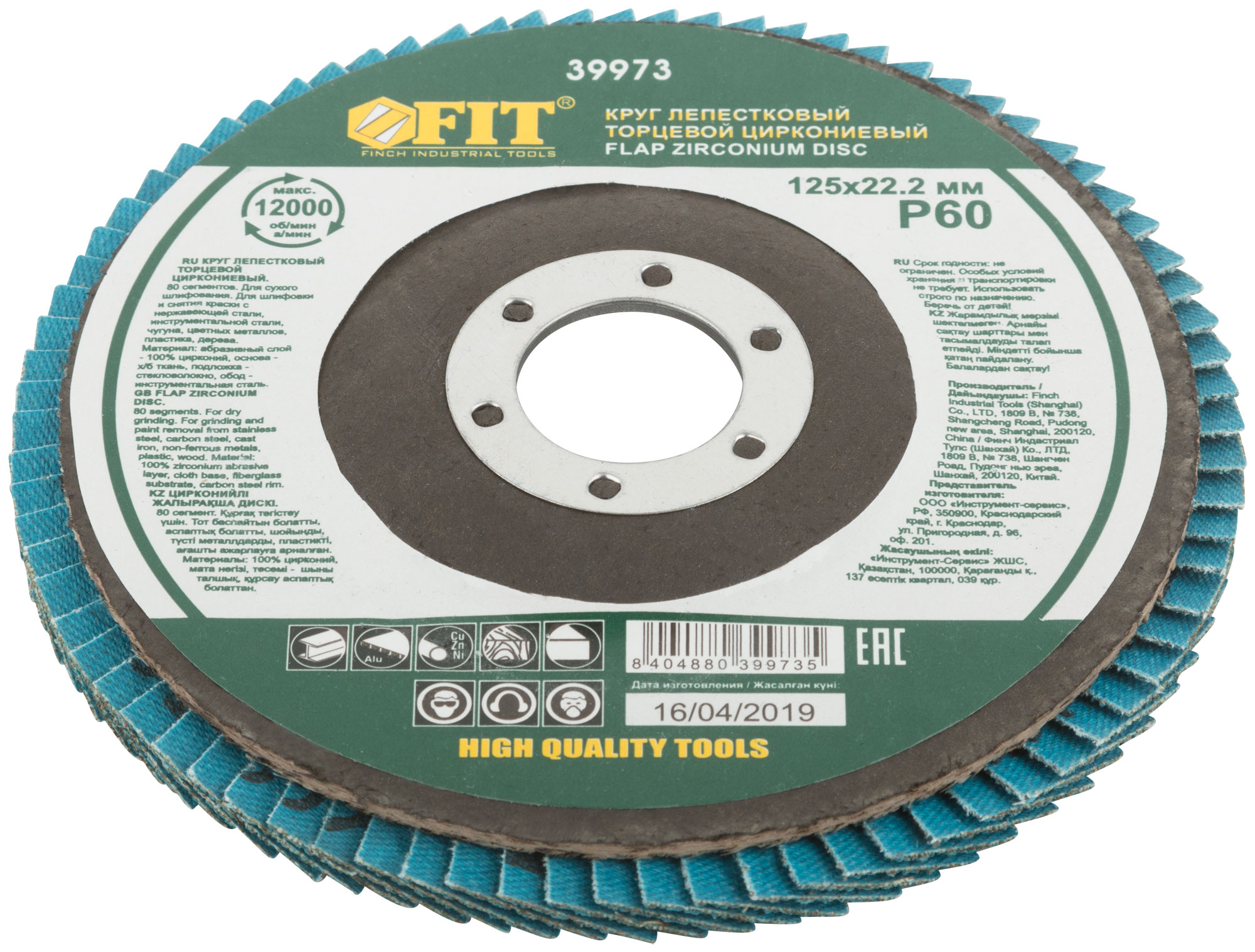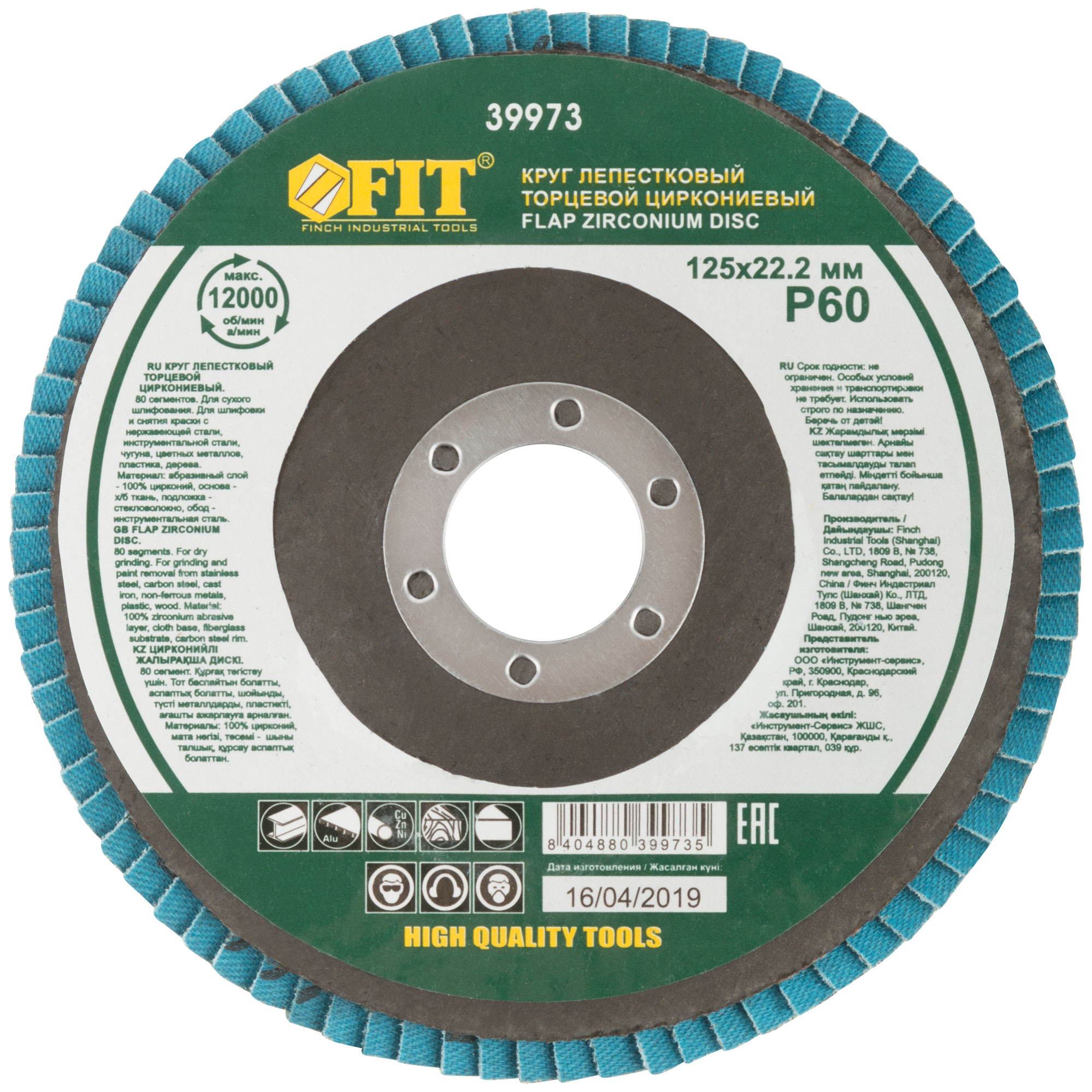 Круг лепестковый торцевой циркониевый плоский, 125 мм P 60
