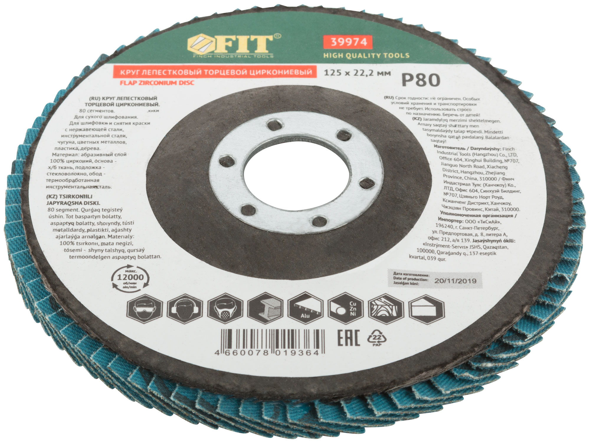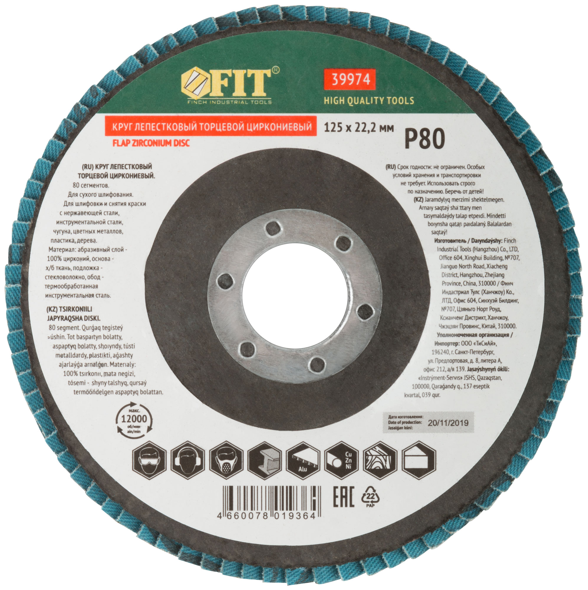 Тип 1 (Плоский). 80 лепестков. Для УШМ. Посадочный диаметр 22,2 мм. Для сухого шлифования и снятия краски с нержавеющей стали, инструментальной стали, чугуна, цветных металлов, пластика, дерева. Материал: абразивный слой - 100% цирконий, основа - х/б ткань, подложка - стекловолокно, обод - инструментальная сталь.