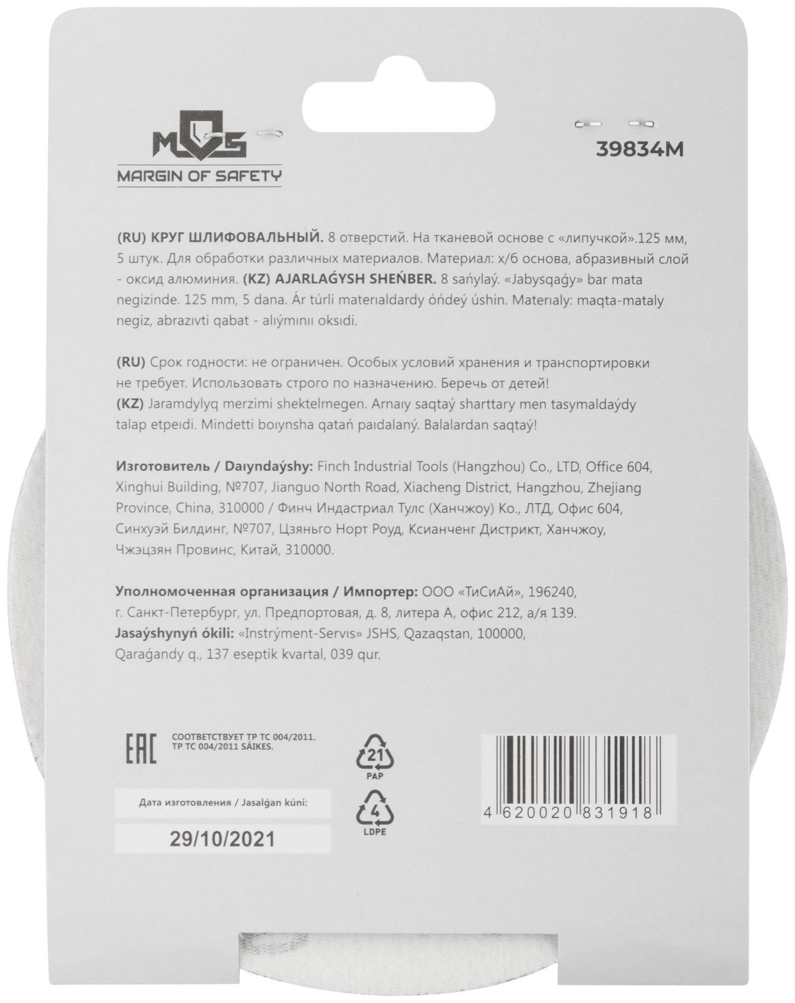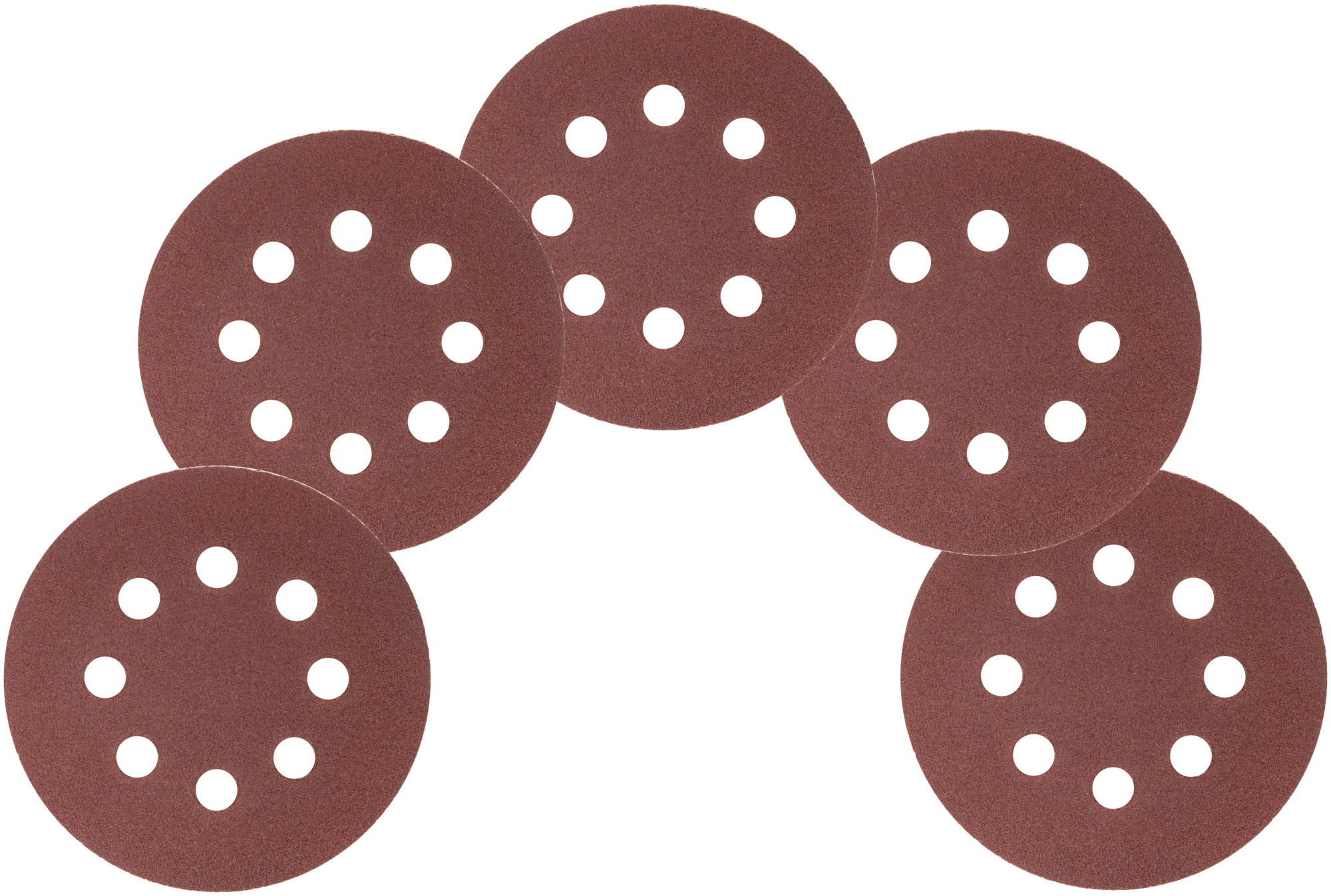 8 отверстий. На тканевой основе с «липучкой». Диаметр 125 мм, набор 5 шт. Для обработки различных материалов. Материал: х/б основа, абразивный слой - оксид алюминия.