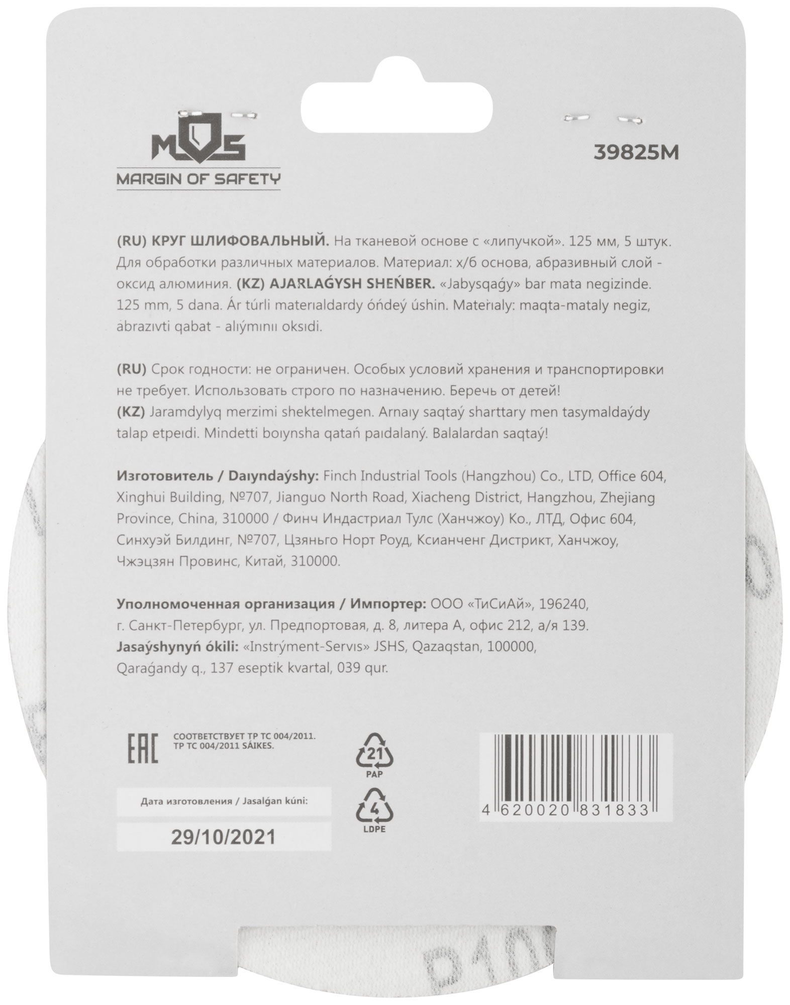 На тканевой основе с "липучкой". Диаметр 125 мм, набор 5 шт. Для обработки различных метериалов. Материал: х/б основа, образивный слой-оксид алюминия.