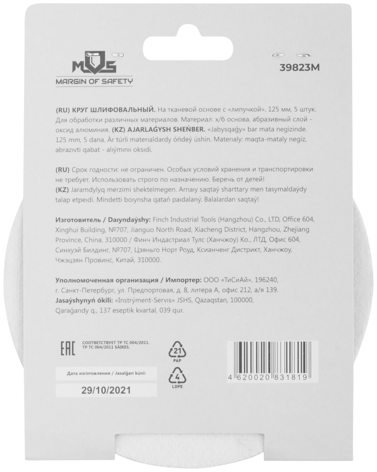На тканевой основе с "липучкой". Диаметр 125 мм, набор 5 шт. Для обработки различных метериалов. Материал: х/б основа, образивный слой-оксид алюминия.