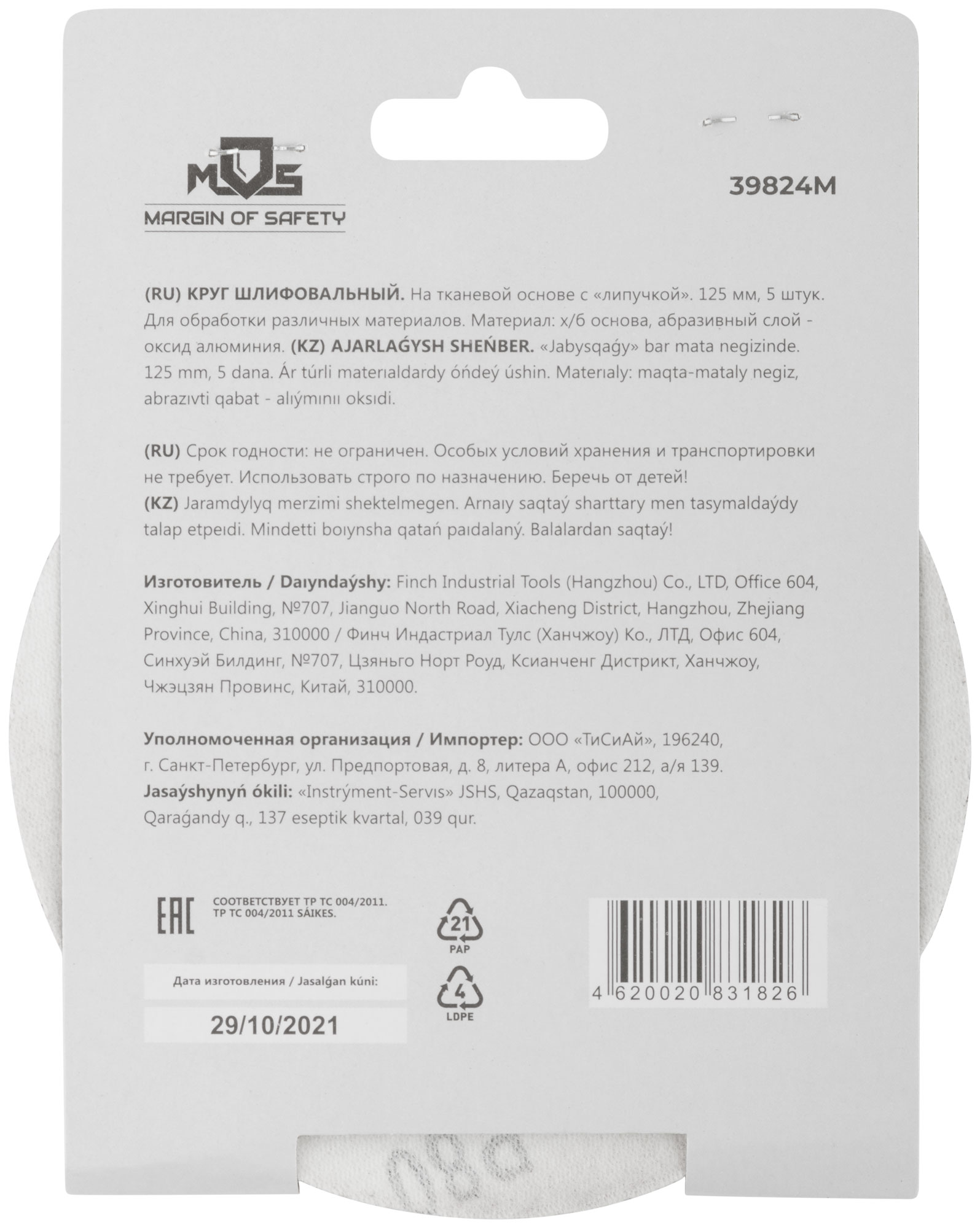 На тканевой основе с "липучкой". Диаметр 125 мм, набор 5 шт. Для обработки различных метериалов. Материал: х/б основа, образивный слой-оксид алюминия.