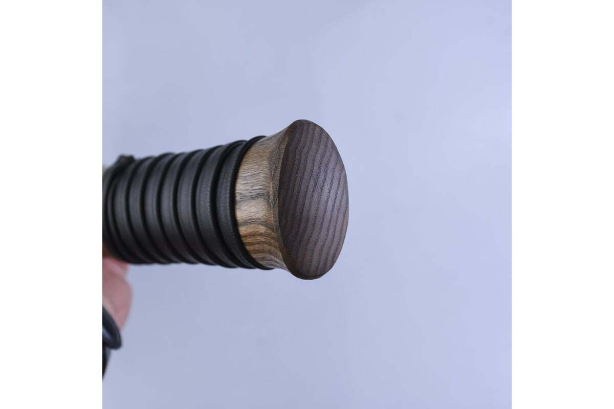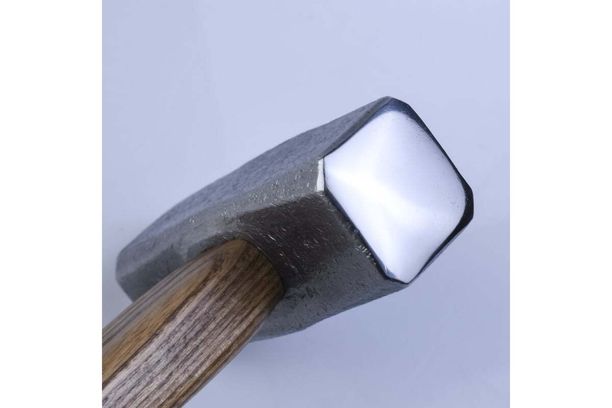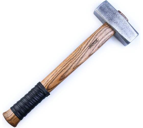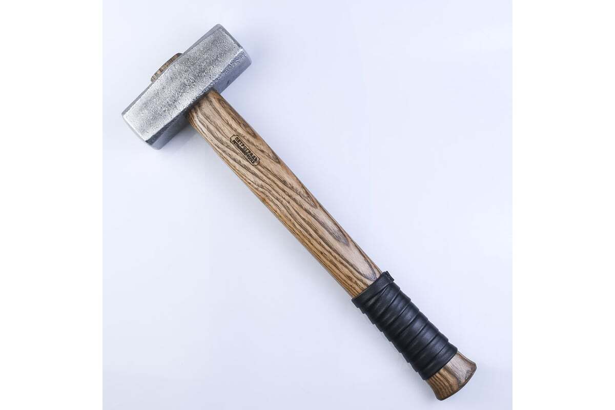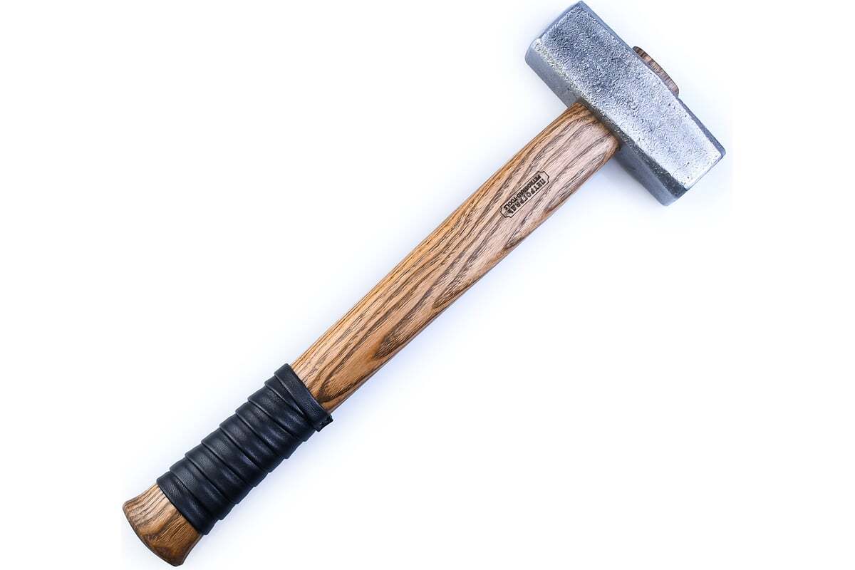 Кованая кувалда с плоским и полукруглым бойком. Рукоять выполнена из ясеня. Покрыта маслом. На рукояти выполнена обмотка из натуральной кожи.