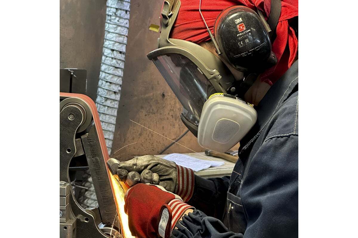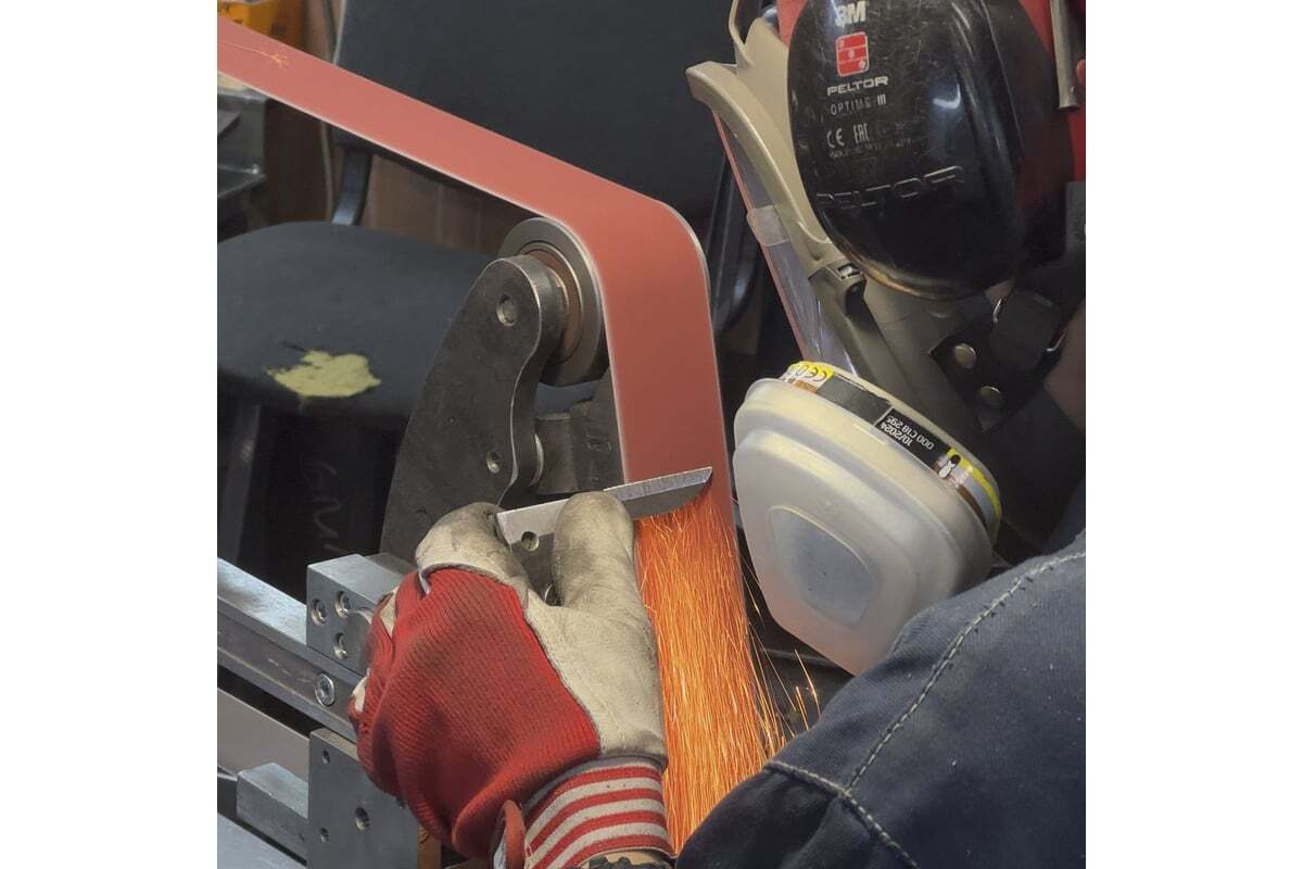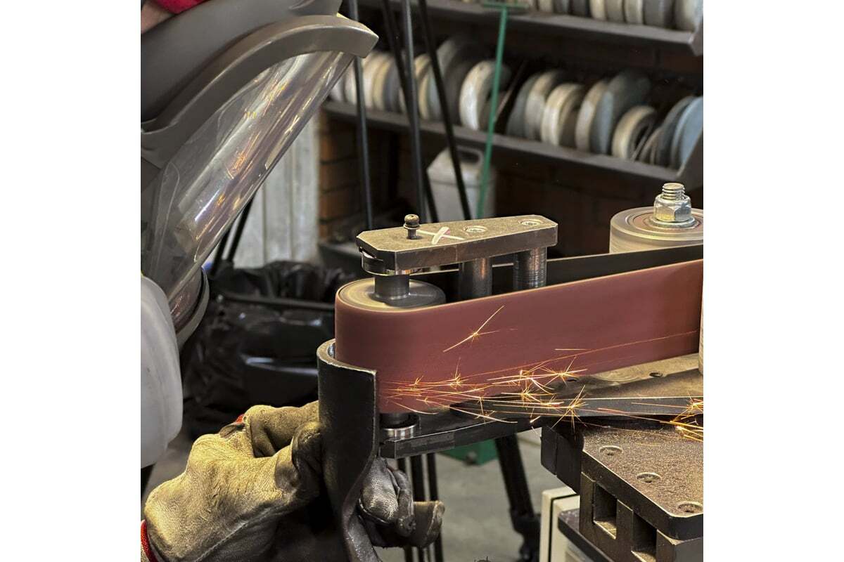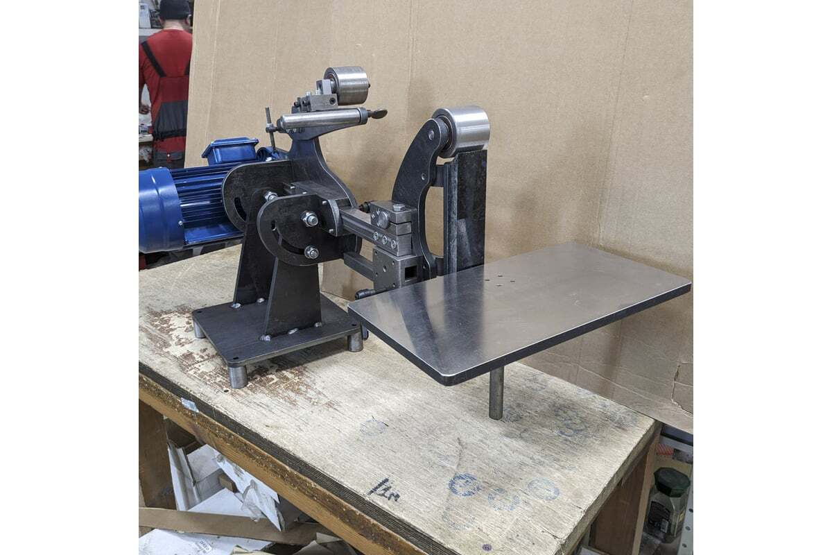 За счет использования толстого металла получается жесткая и надежная конструкция. Ролики стальные, приводной шкив алюминиевый для уменьшения инерционного сопротивления при пуске и останове, что позволяет быстрее выйти на рабочую скорость или завершить работу. Двигатель мощностью 2,2 кВт позволяет эффективно и быстро производить обдирочные работы и другие сложные работы, а частотный преобразователь поможет эффективно подобрать необходимую скорость под каждый материал.