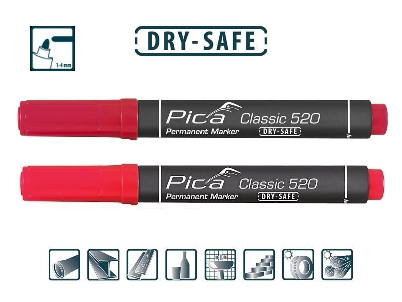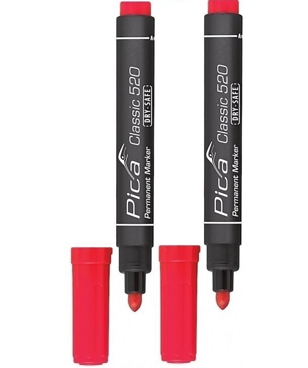 Водонепроницаемый перманентный маркер с круглым пулевидным красным наконечником и чернилами на спиртовой основе. Корпус из прочного полипропилена. Ширина маркировки 1-4 мм. Время полного высыхания маркировки - около 10 сек. Время работы - до 14 дней без крышки. Используется при отделочных строительных работах, а также в электромонтаже. Маркировка хорошо держится на таких поверхностях как кирпич, резина, оцинкованные металлы, пластик, стекло, керамика или ламинированная древесина.