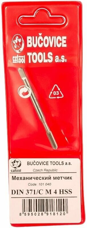 Bucovice Tools Метчик машинный DIN 371, /HSS/ M 4x0,7 мм 101040. Вид: машинный . Направление резьбы: правая . Сталь: HSS . Посадочный квадрат: 3.4 мм. Тип резьбы: метрическая (М) . Диаметр резьбы (М): М4 . Шаг резьбы М (мм): 0.7 . Диаметр резьбы (G/BSPP): нет дюйм. Диаметр резьбы (NPT/K): нет дюйм. Диаметр резьбы (Rc/BSPT): нет . Диаметр резьбы (UNC): нет . Диаметр резьбы (UNF): нет . Диаметр резьбы (BSW): нет . Диаметр резьбы (PG): нет . Диаметр резьбы (BSF): нет . Диаметр резьбы (Tr): нет . Диаметр резьбы (UNEF): нет дюйм. Диаметр резьбы (MF): нет . Шаг резьбы (MF): нет мм. Диаметр резьбы (V): нет . Шаг резьбы V : нет мм. Стандарт: DIN 371 . Шаг резьбы (G/BSPP): нет дюйм. Шаг резьбы (NPT/K): нет дюйм. Шаг резьбы (Tr): нет мм. Диаметр резьбы (W): нет . Количество в наборе: 1 шт.