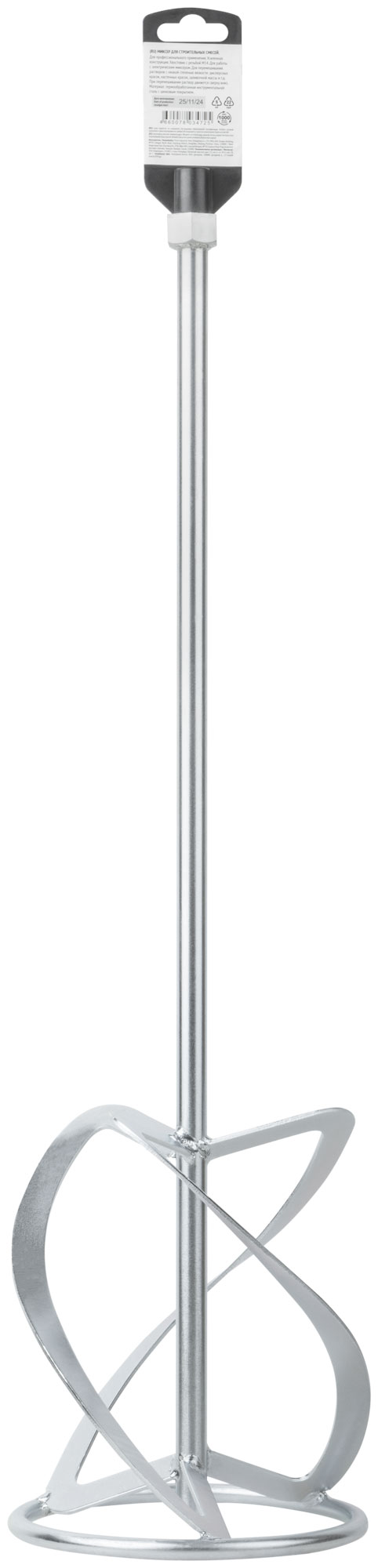 Профи. Усиленная конструкция. Насадка на миксер для перемешивания растворов с низкой степенью вязкости: дисперсионных красок, настенных красок, заливочной массы и т.д. При перемешивании раствор движется сверху вниз. Хвостовик с резьбой М14. Материал: инструментальная сталь, цинковое покрытие.