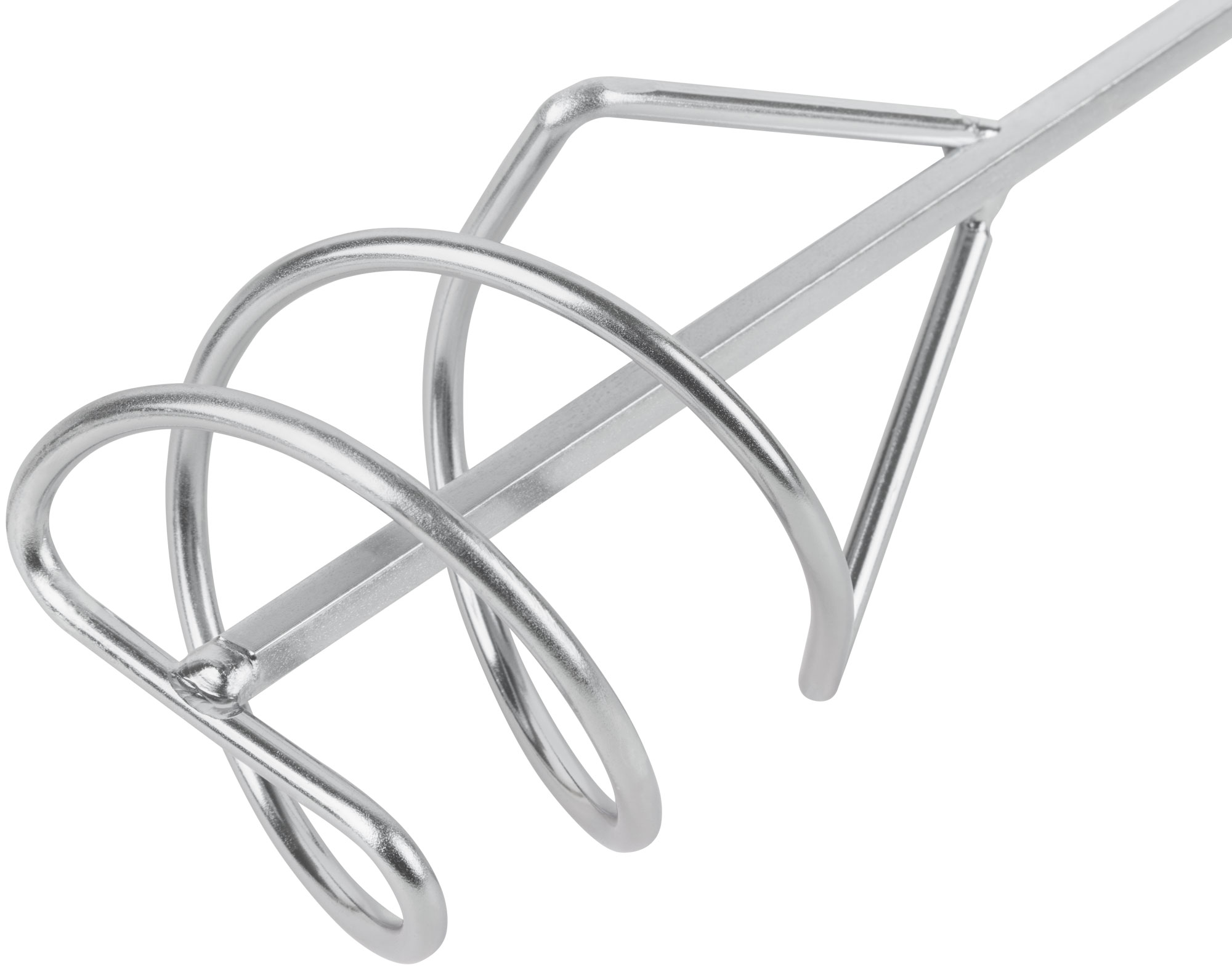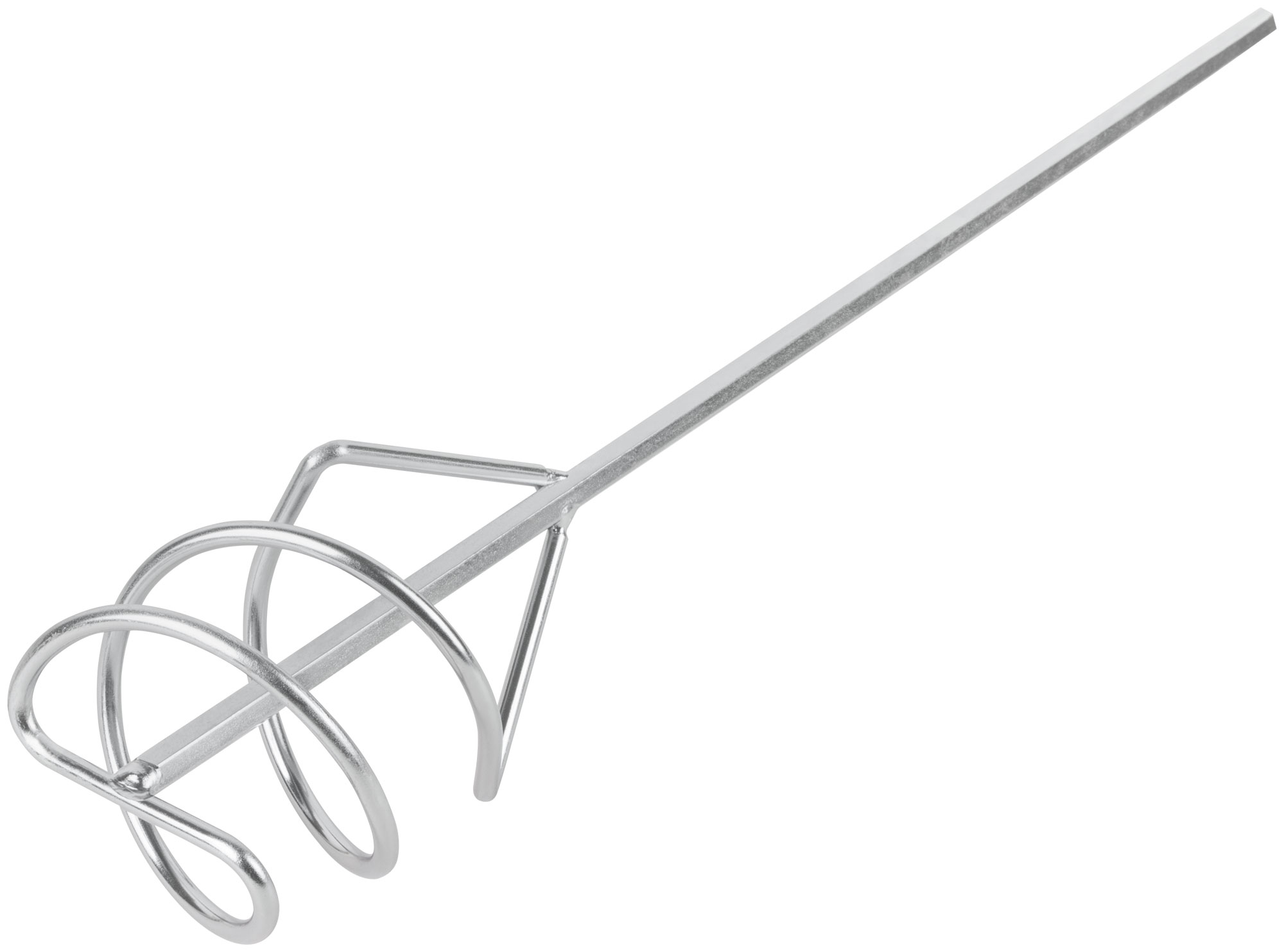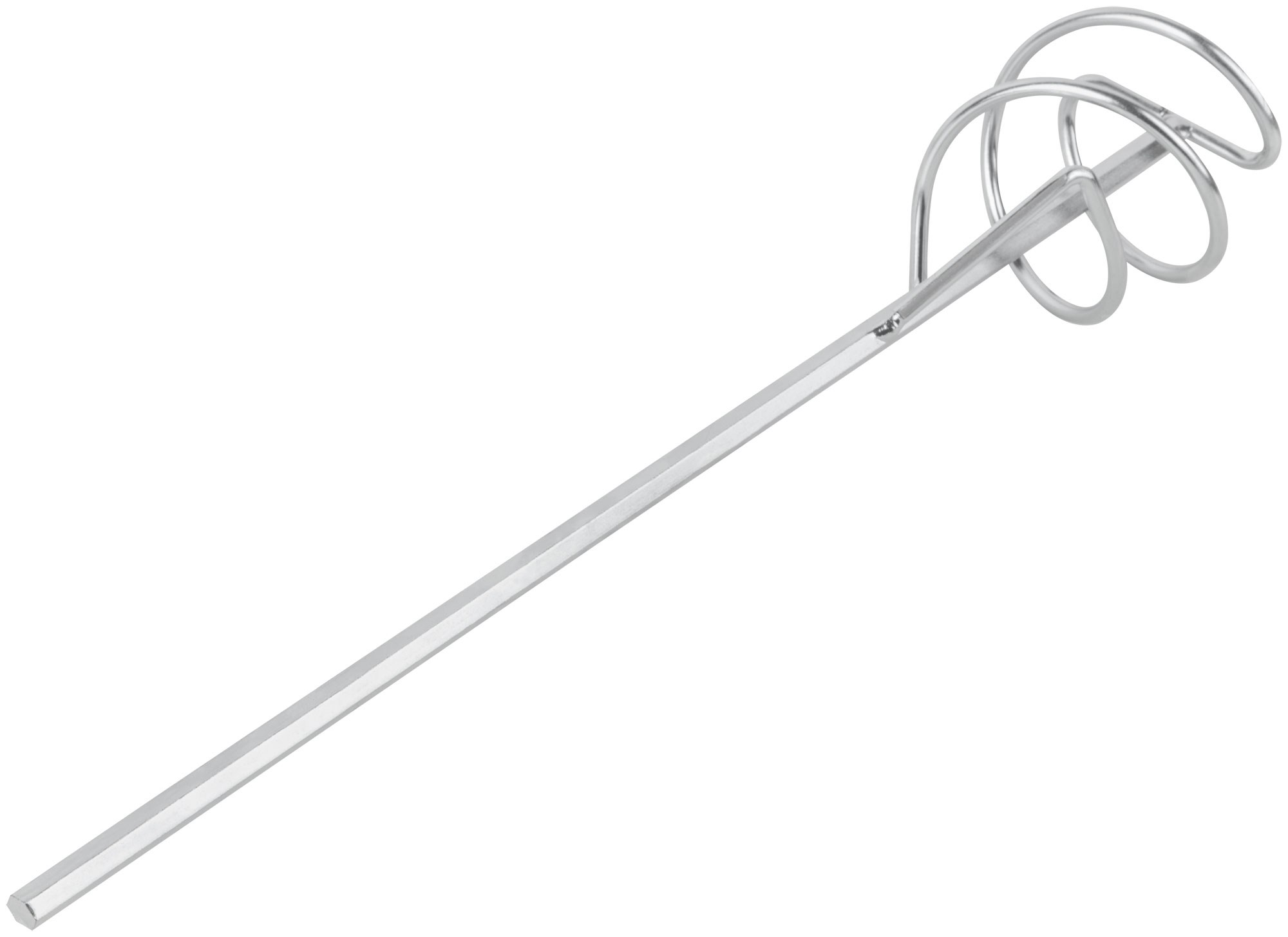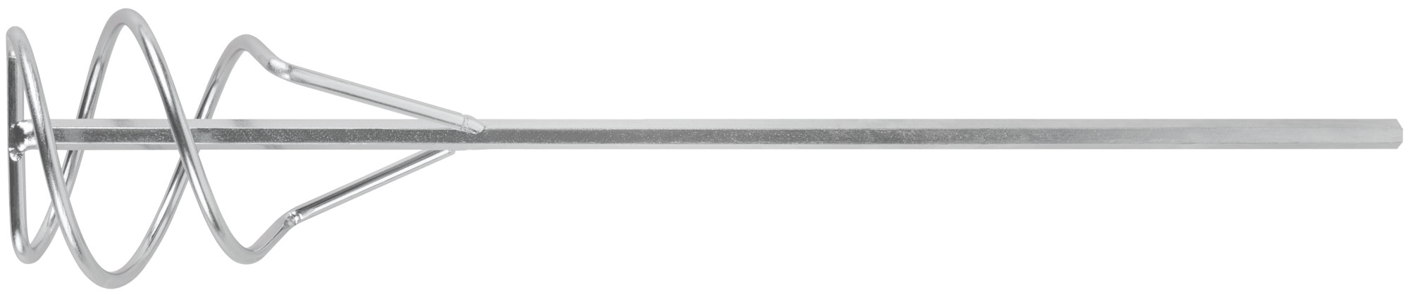 Насадка на дрель. Для перемешивания краски и строительных смесей. Шестигранное сечение стержня. Материал: инструментальная сталь, цинковое покрытие.