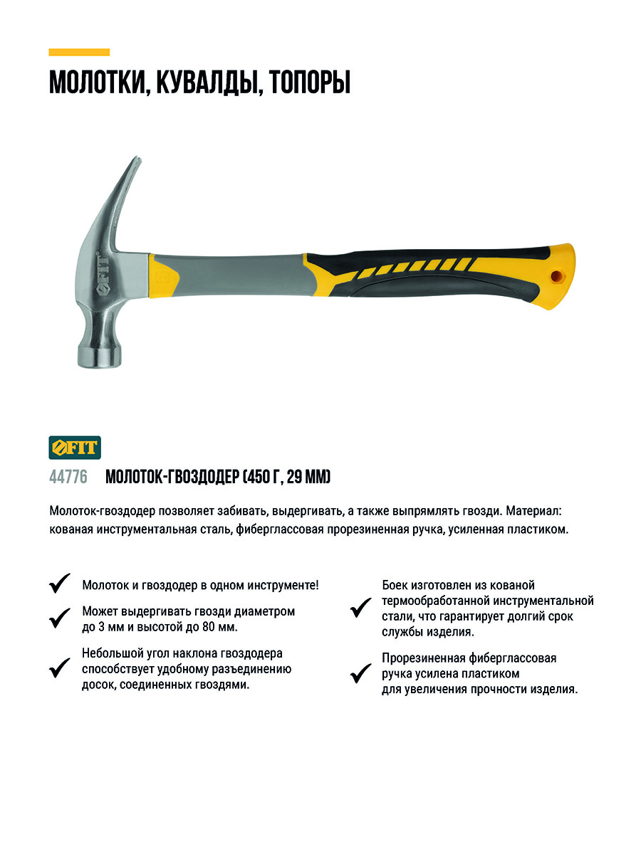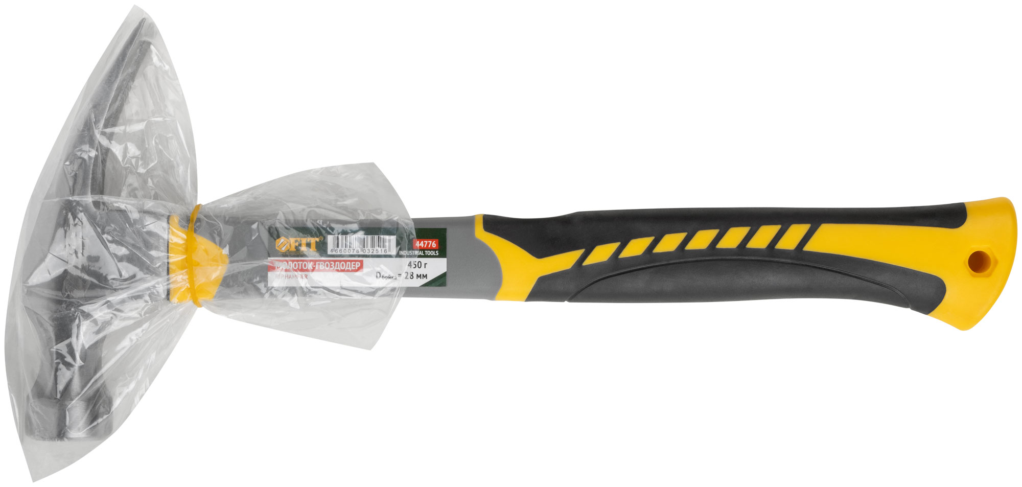 Молоток-гвоздодер, фиберглассовая усиленная 3-х цветная ручка, Профи 29 мм, 450 гр.