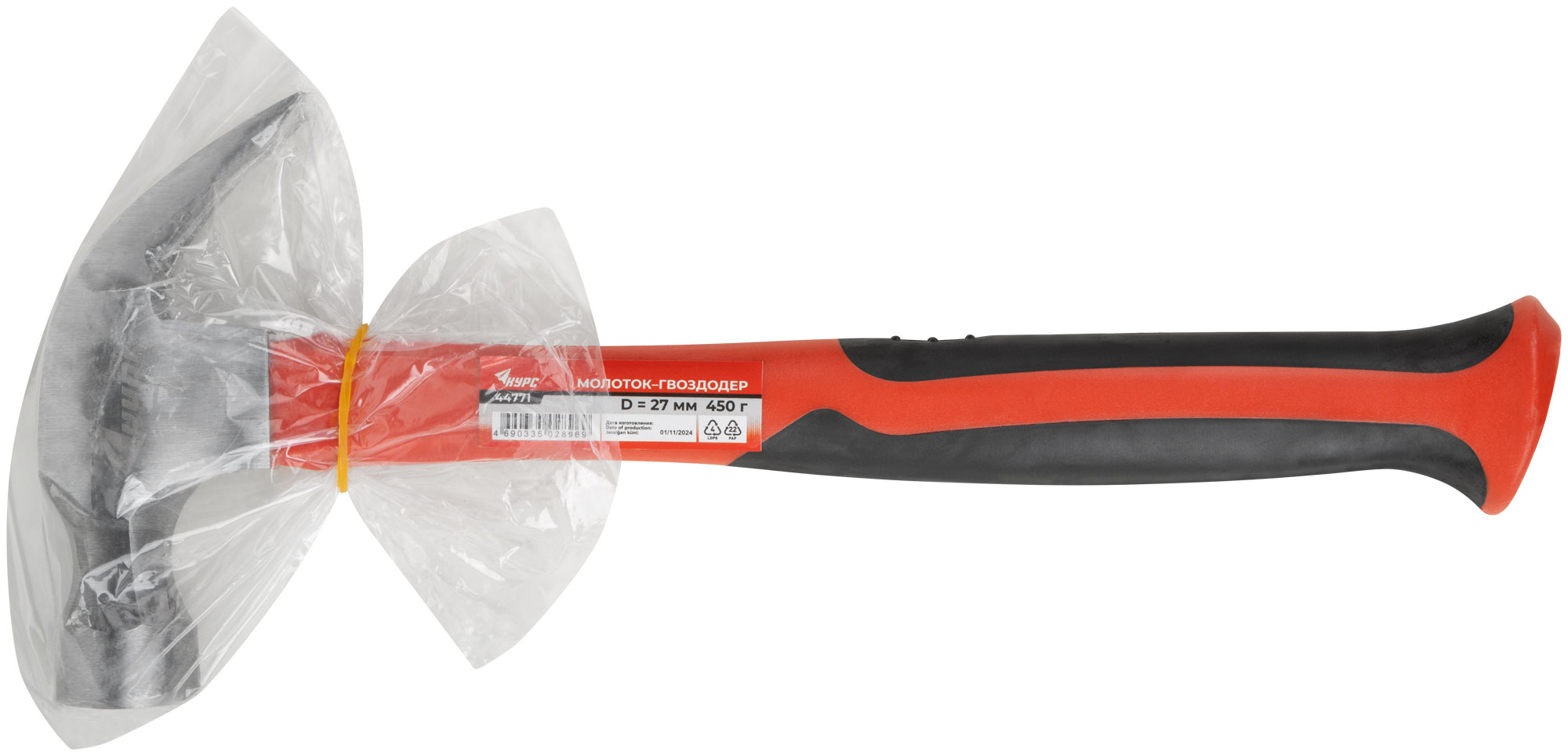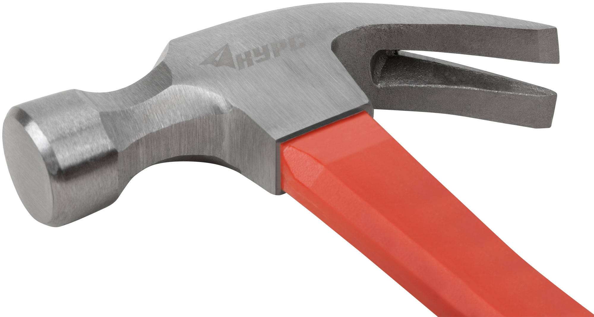 Молоток-гвоздодер, фиберглассовая усиленная ручка 27 мм, 450 гр.