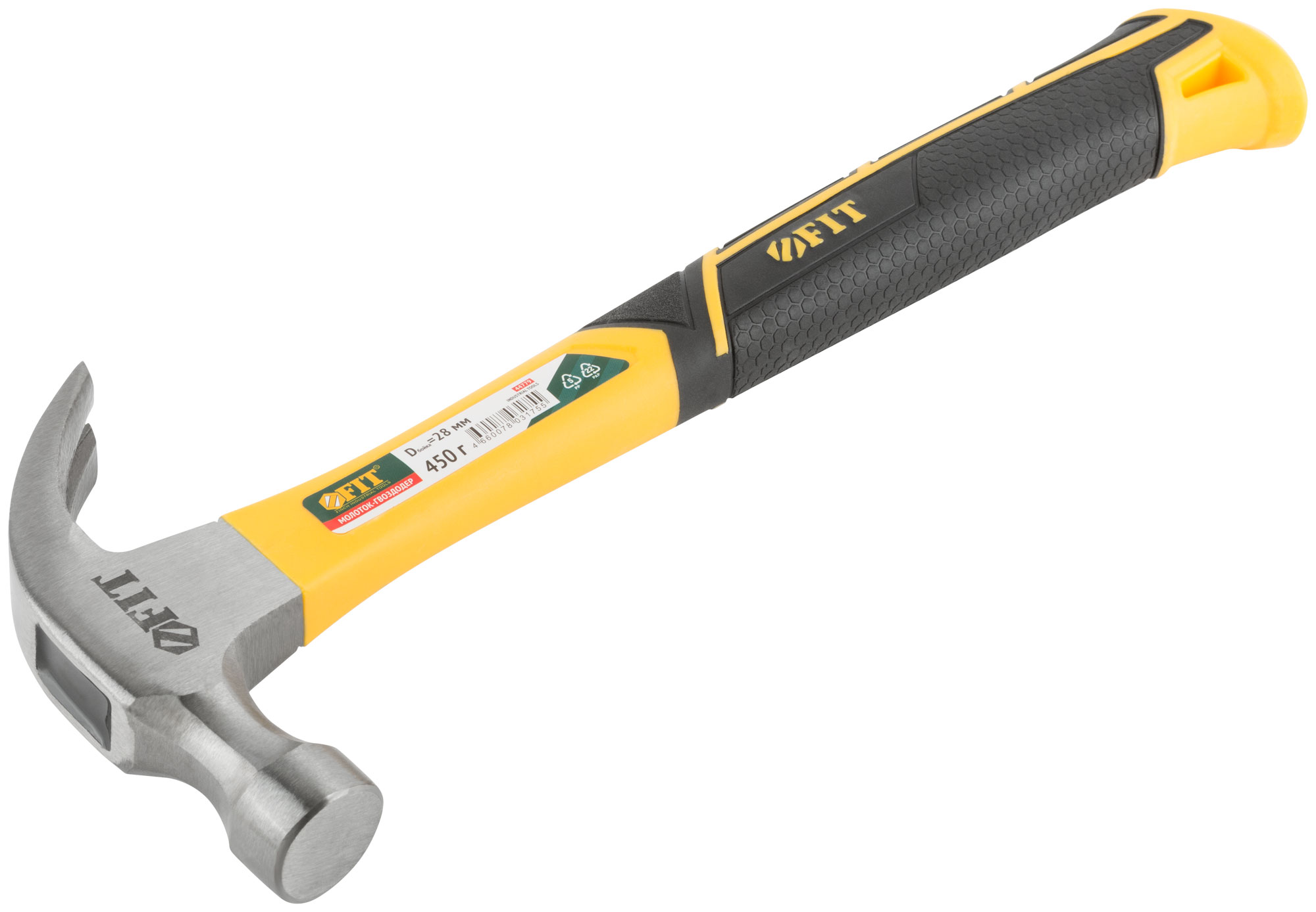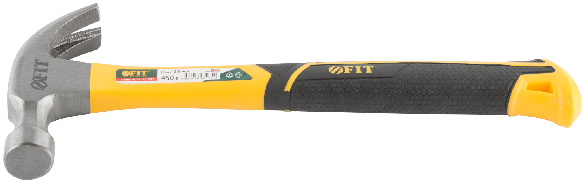 Молоток-гвоздодер, фиберглассовая усиленная ручка, Профи 28 мм, 450 гр.