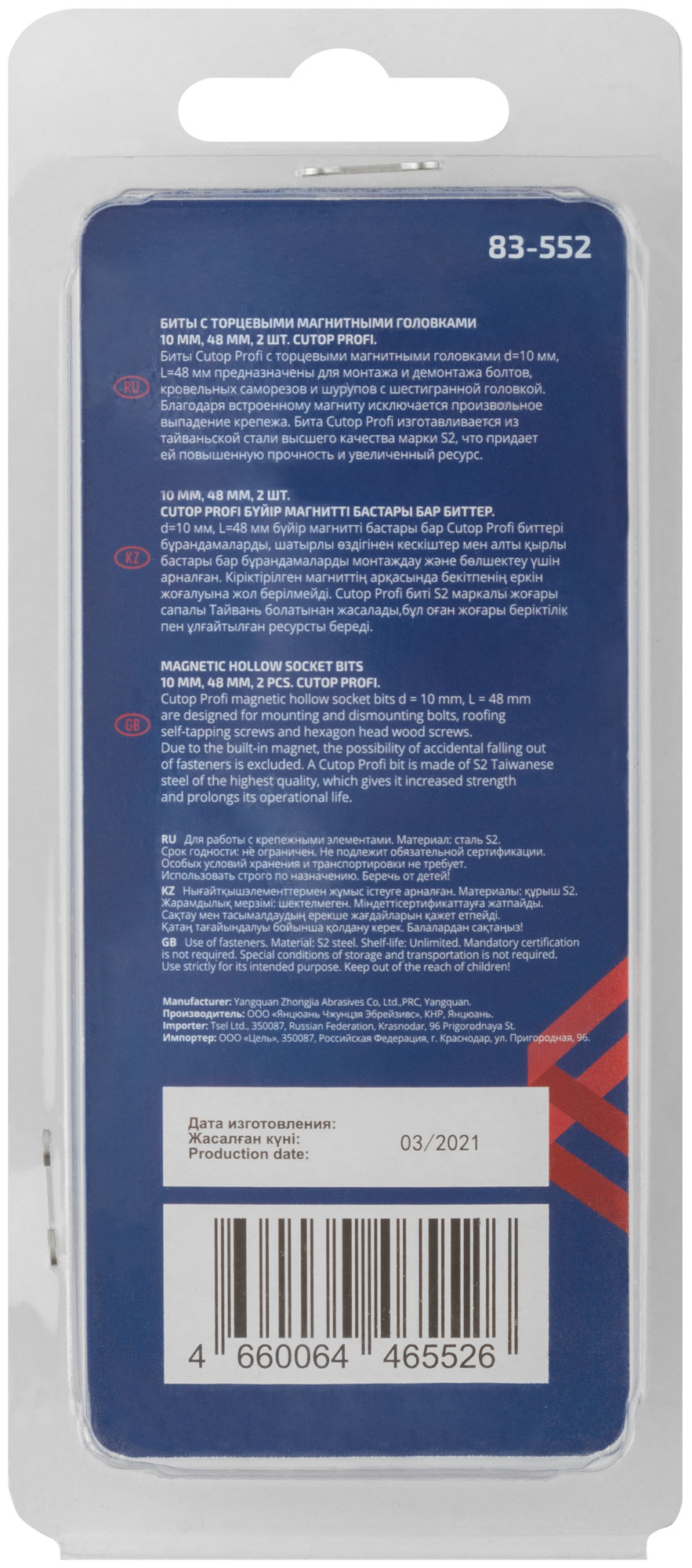 Набор бит с торцевыми магнитными головками 10 мм, 2 шт., CUTOP Profi, 48 мм