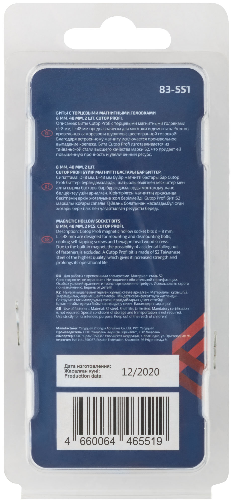 Набор бит с торцевыми магнитными головками 8 мм, 2 шт., CUTOP Profi, 48 мм