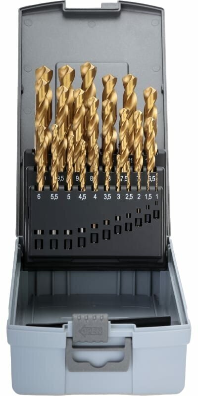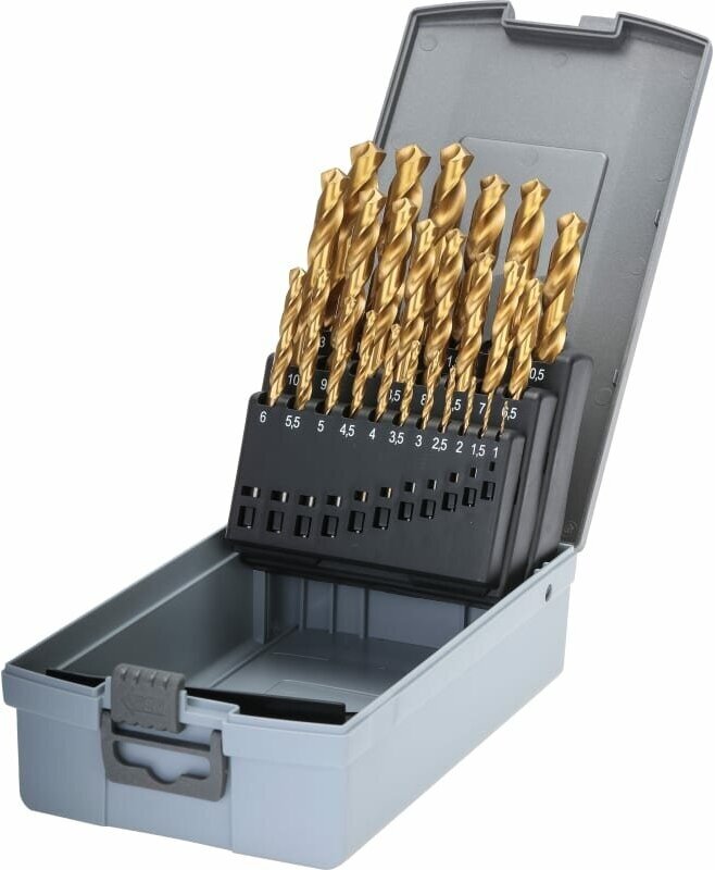 Сверла изготовлены методом полной шлифовки при помощи инструмента на основе кубического Нитрида Бора - CBN(искусственный алмаз). Высококачественная быстрорежущая сталь HSS-G (M2), твердостью 63-65Hrc, гарантирует прочность и износостойкость. Износостойкое покрытие Нитрида Титана, препятствует налипанию продуктов сверления и увеличивает ресурс сверла на 300-400%.