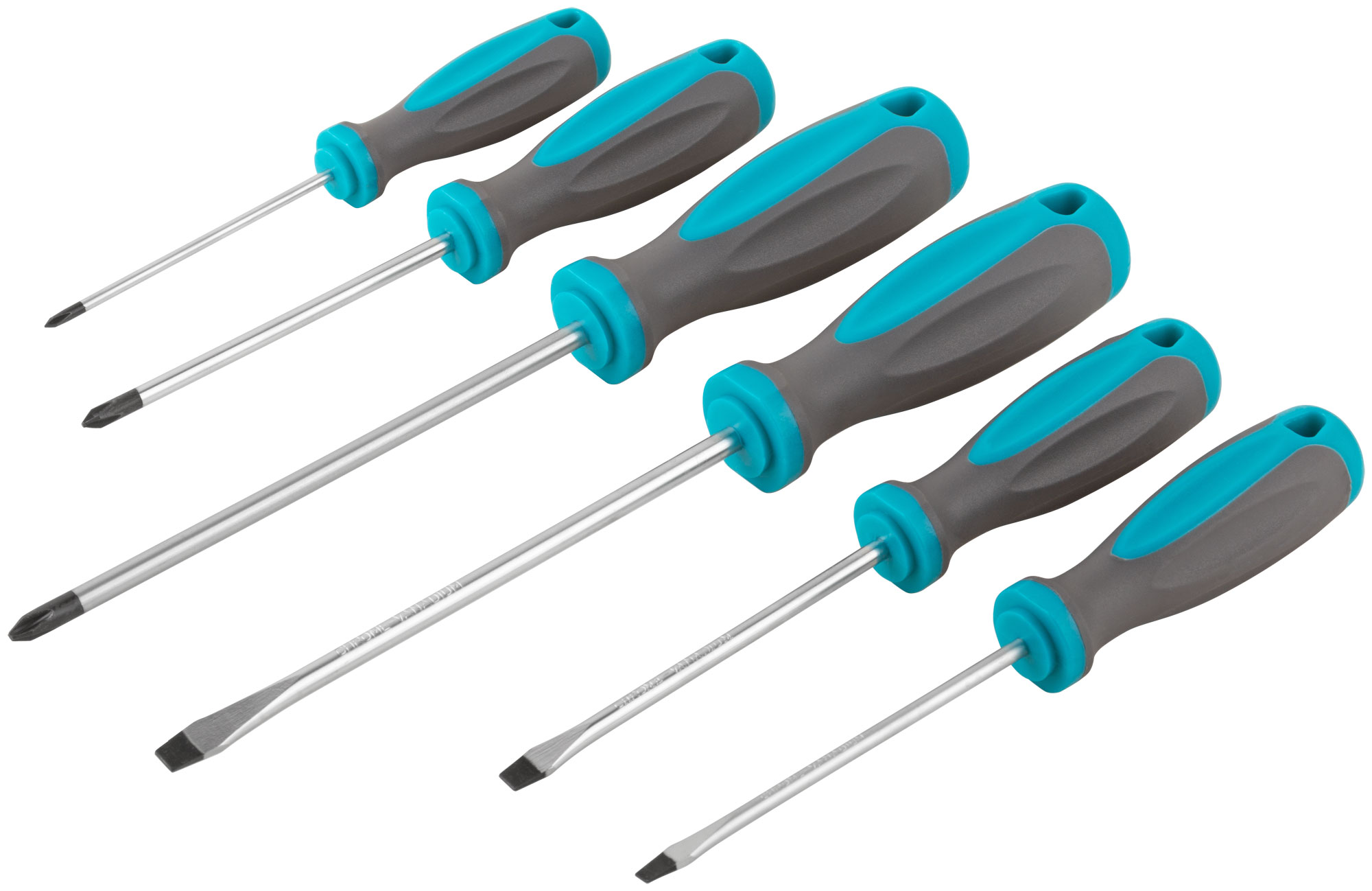 Набор отверток "Техник", на держателе, CrV сталь, прорезиненные ручки, 6 шт., PH0,1,2 + SL4,5,6
