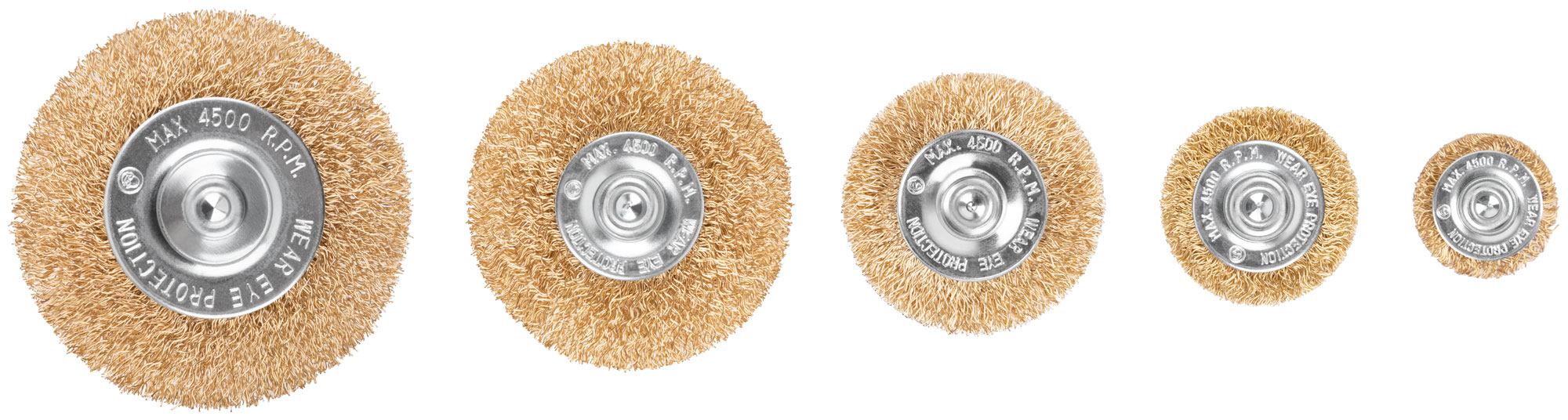 Набор щеток для дрели, 5 шт. ("Плоские" 25,38,50,65,75 мм, латун. витая проволока, блистер, CUTOP Profi