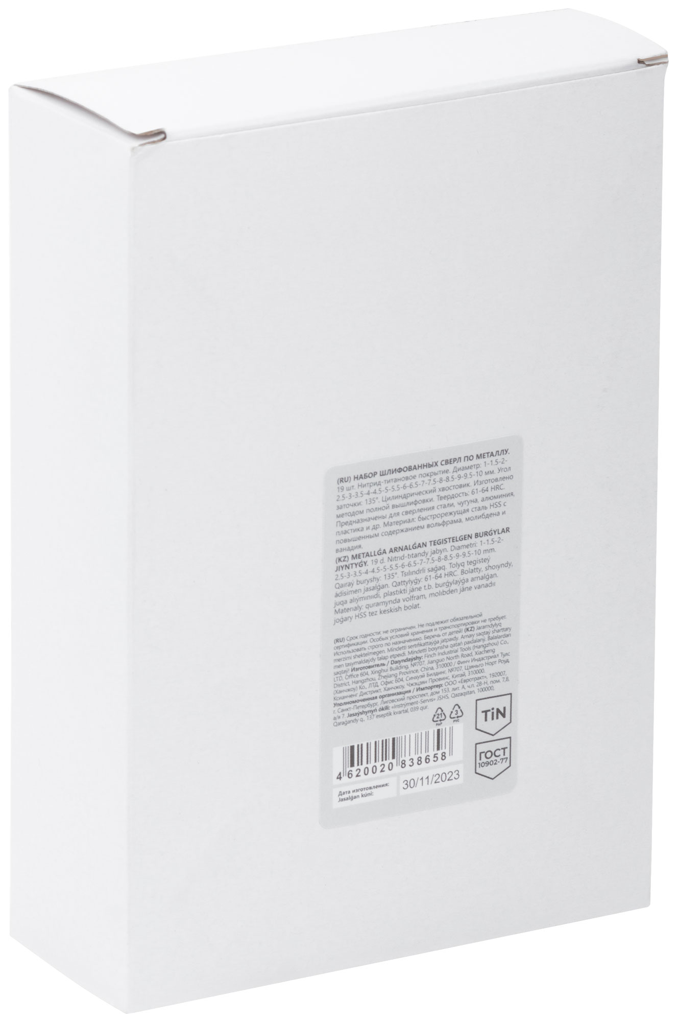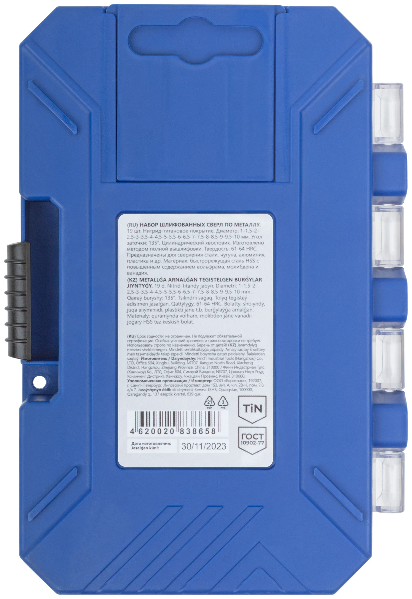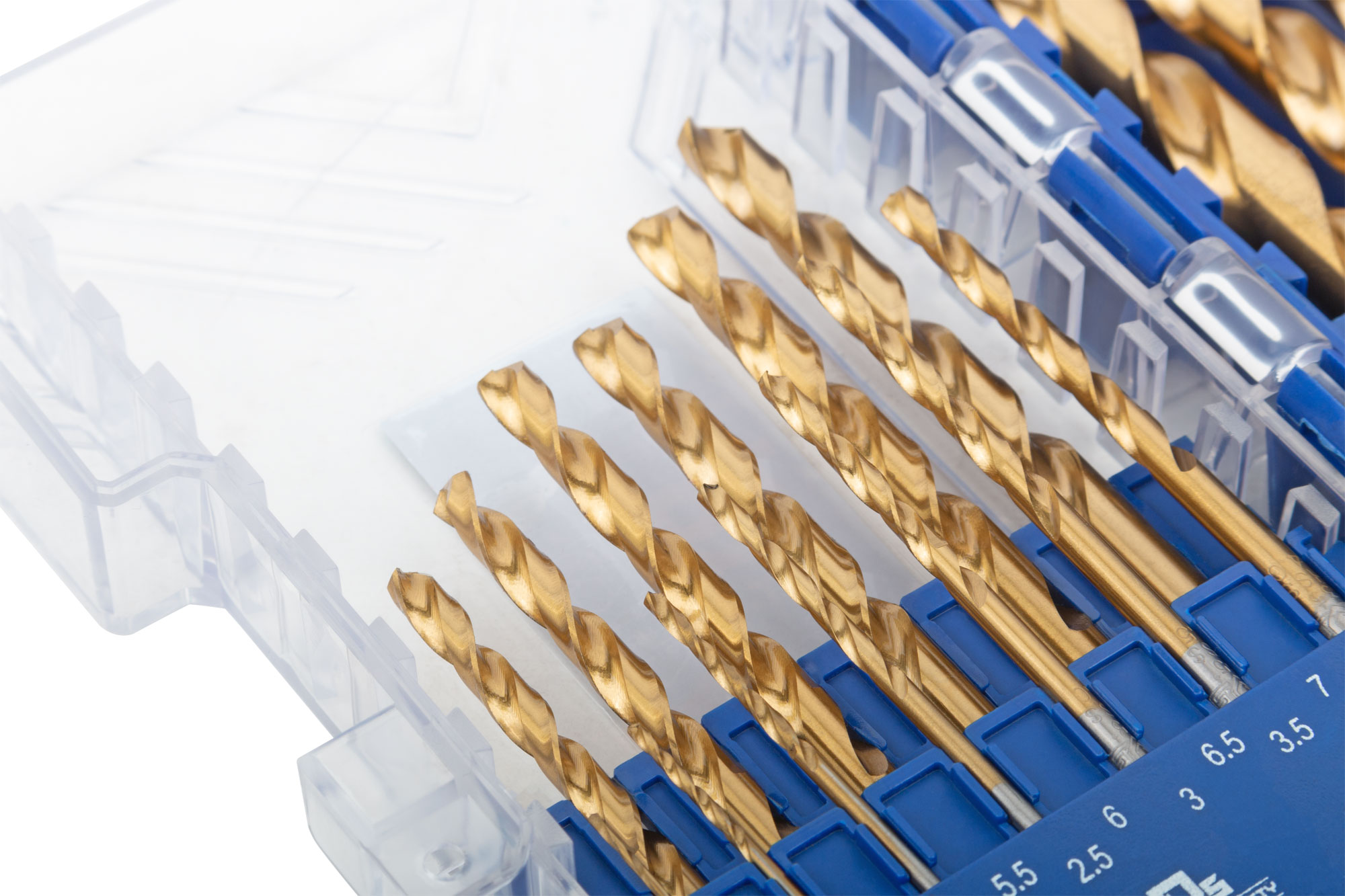 Набор сверл по металлу HSS шлифованные, титановое покрытие, угол заточки 135°, пласт. кейс, 19 шт. (1-10 мм, через 0,5 мм)