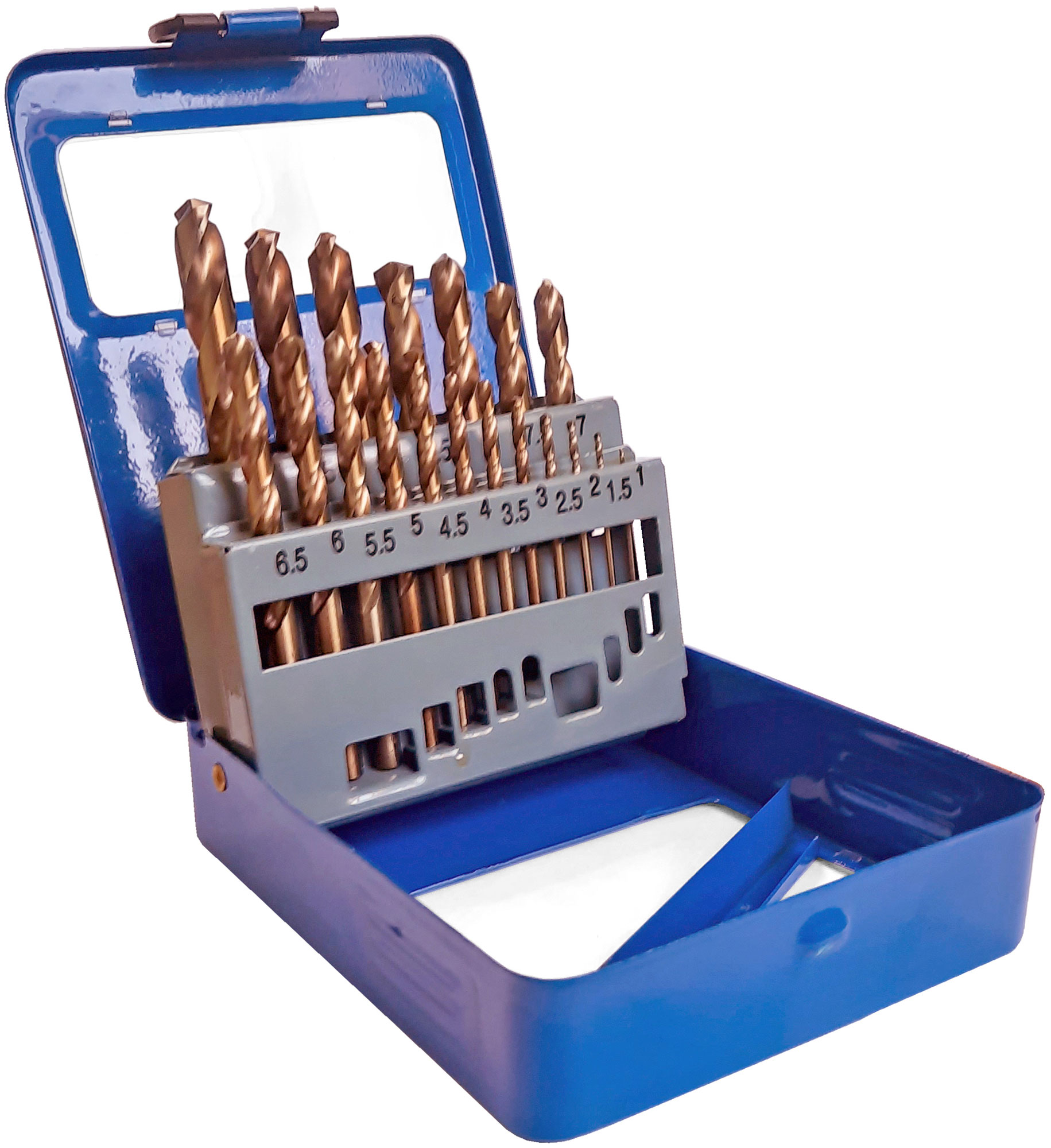 Набор сверл по металлу с кобальтом 5% в металлической коробке; 1-10 мм (через 0,5 мм), 19 шт., Cutop Profi