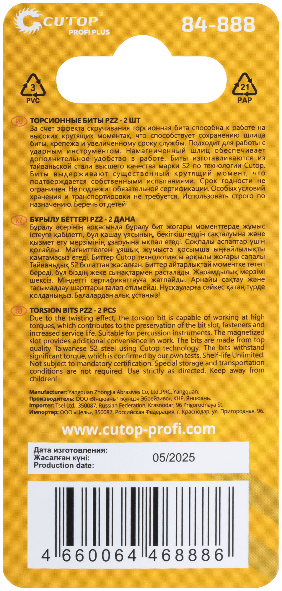 Набор торсионных бит, 2шт., CUTOP Profi Plus, PZ2, 25 мм