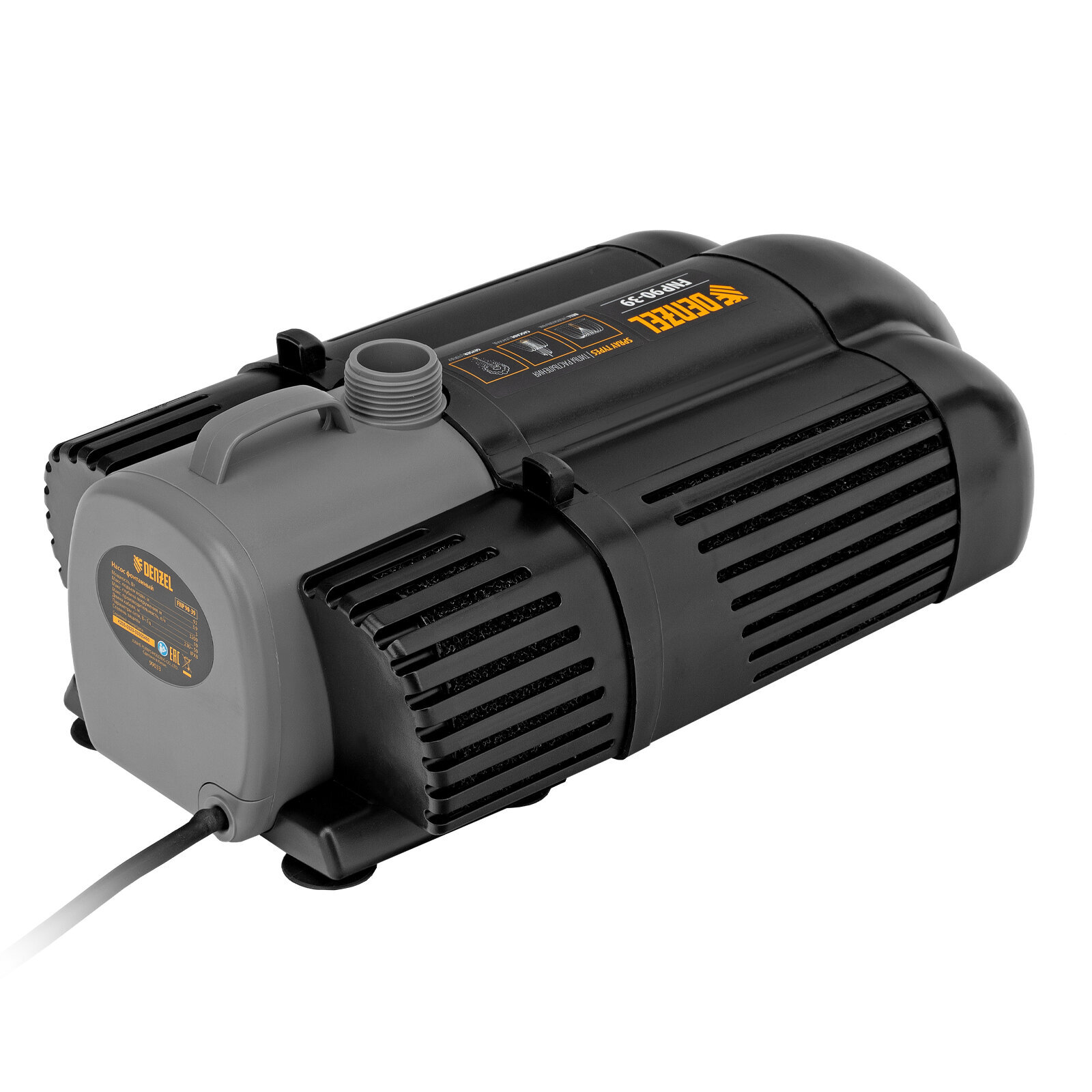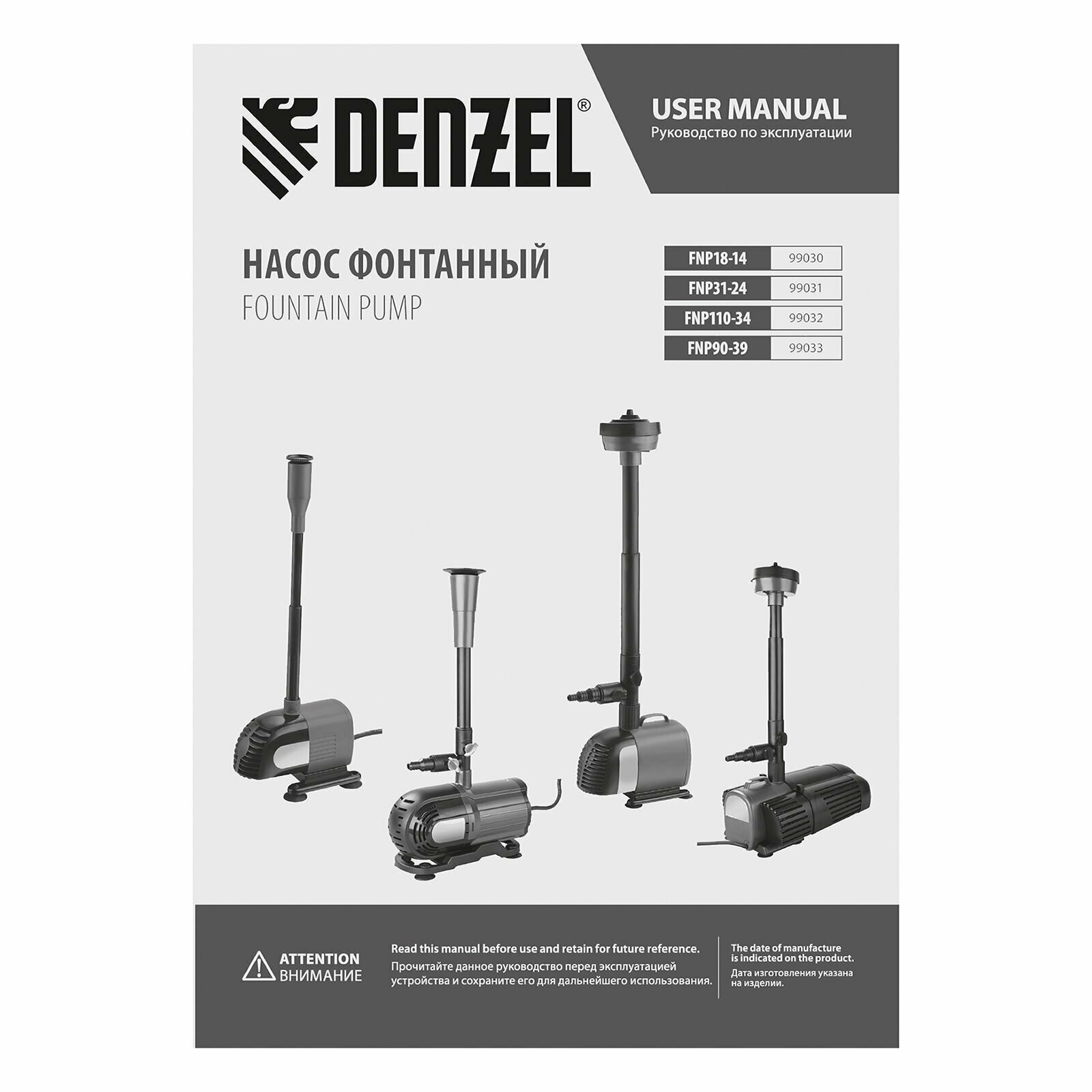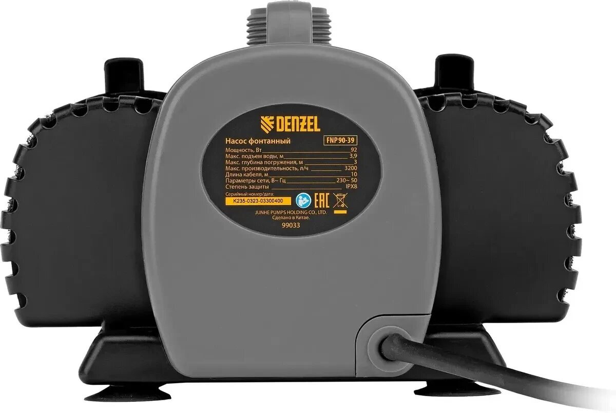 Фонтанный насос Denzel FNP90-39 99033 мощностью 92 Вт, с насадками колокольчик/каскад/гейзер, перекачивает 3200 л воды в час и обеспечивает максимальную высоту подъема 3,9 м. Позволяет создать декоративный фонтан, украсив водоем и оживив ландшафт дачного участка. Установив одну из входящих в комплект насадок, можно получить наиболее подходящий тип струи: в виде колокольчика, каскада или гейзера. Также в конструкции насоса предусмотрен специальный патрубок для создания водопада.
