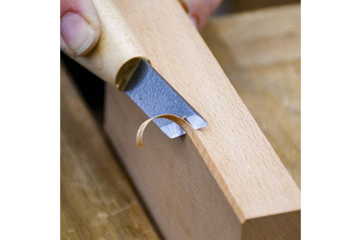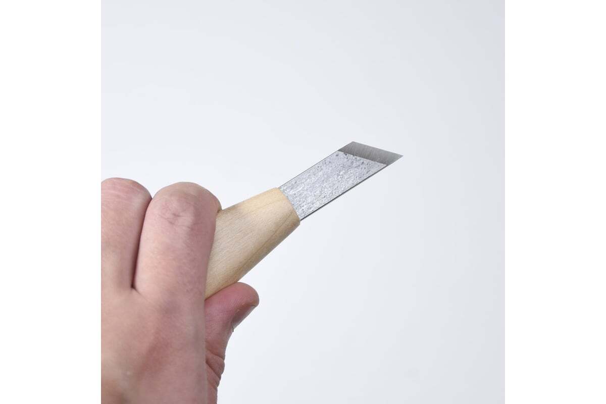 Нож с косой заточкой имеет широкий спектр применения (резьба, разметка, работы с картоном, маркетри, интарсия, фанерование, работа с кожей, производство музыкальных инструментов, моделировании и в повседневной жизни, в быту).