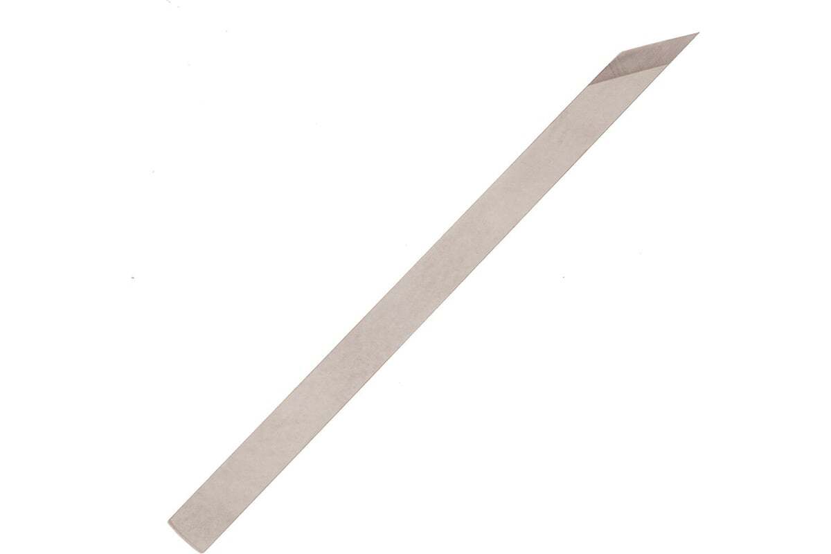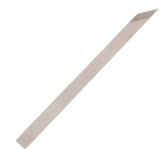 Изделие применяется при работе с картоном, древесиной, кожей. Твердость металла допускает использование для резьбы по дереву. Модель поставляется заточенной и готовой к эксплуатации.