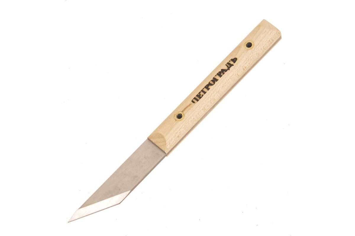 Нож, косая заточка 30град, 180мм/15мм, правый Петроградъ М00013996 используется для эффективной работы с древесиной, кожей и картоном. Острое лезвие закалено до твердости 59-61 HRC, что позволяет длительное время сохранять остроту. Ширина лезвия - 15 мм. Имеется прямоугольная рукоятка из сапели.