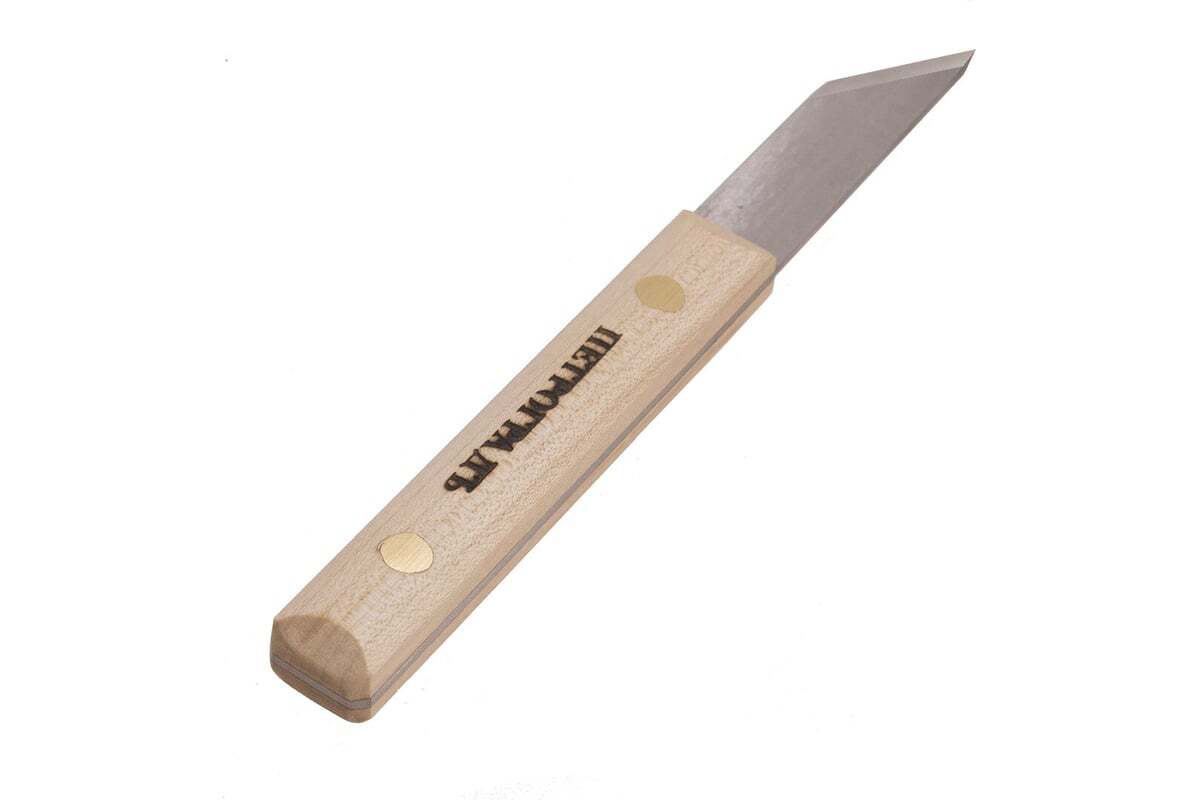 Нож, косая заточка 30град, 180мм/15мм, универсальный Петроградъ М00013994 поставляется с рукояткой из сапели. Древесина пропитана маслом для устойчивости к гниению.