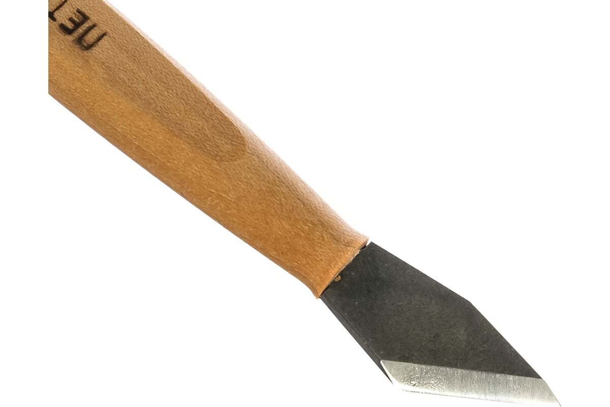 Нож разметочный, модель N1, скошенный ПЕТРОГРАДЪ М00016065 предназначен для резчиков по дереву. Клинок заточен на одной грани — это позволяет правшам пользоваться ножом с комфортом. Толщина лезвия - 2,3 мм,полная длина изделия - 195 мм. Лезвие из высокоуглеродистой стали подвергнуто закалке. На рукояти имеется специальный упор, предотвращающий соскальзывание руки.
