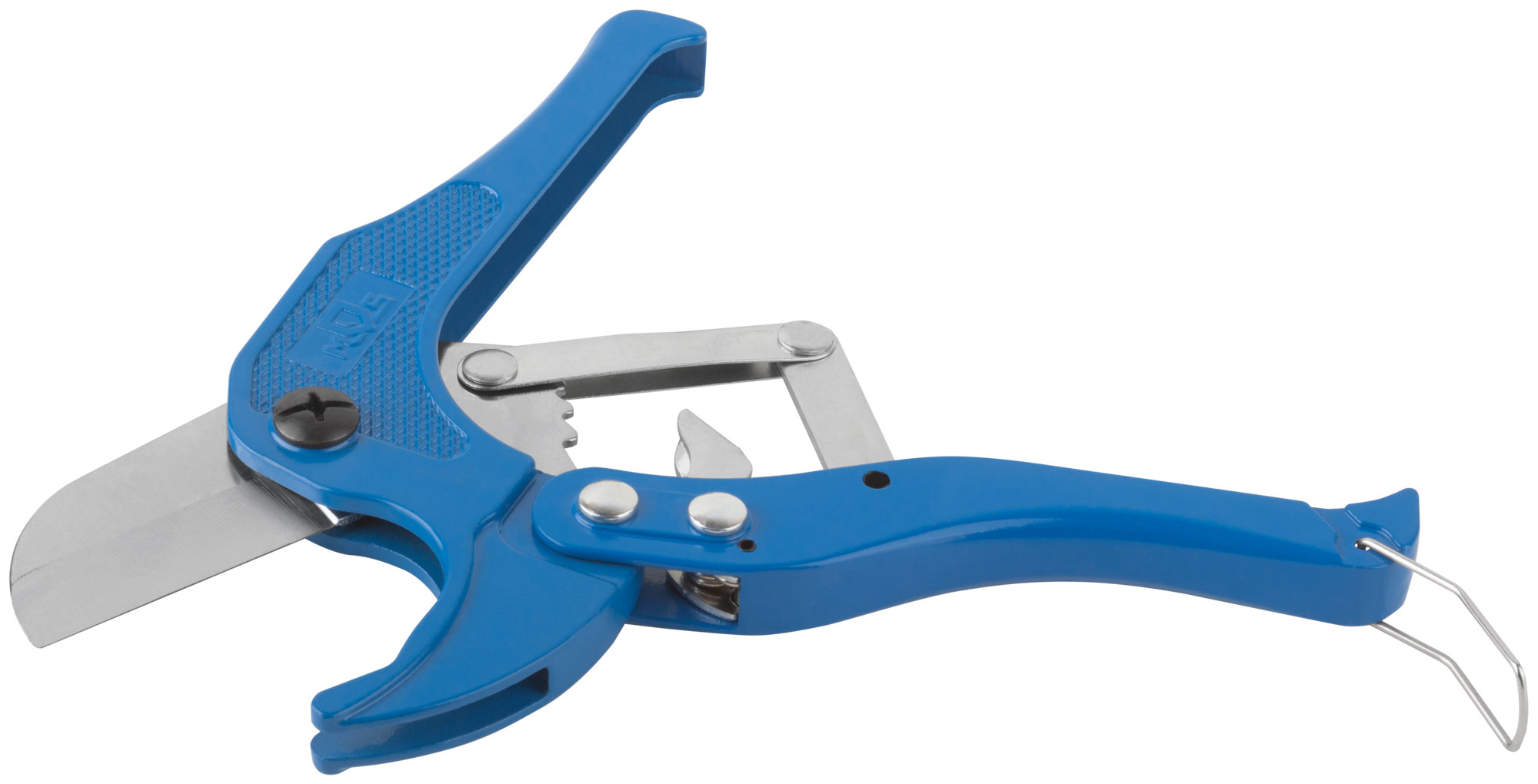 Для резки пластиковых и металлопластиковых труб. Материал: корпус из алюминиевого сплава, лезвие из инструментальной стали. Упаковка: блистер.
