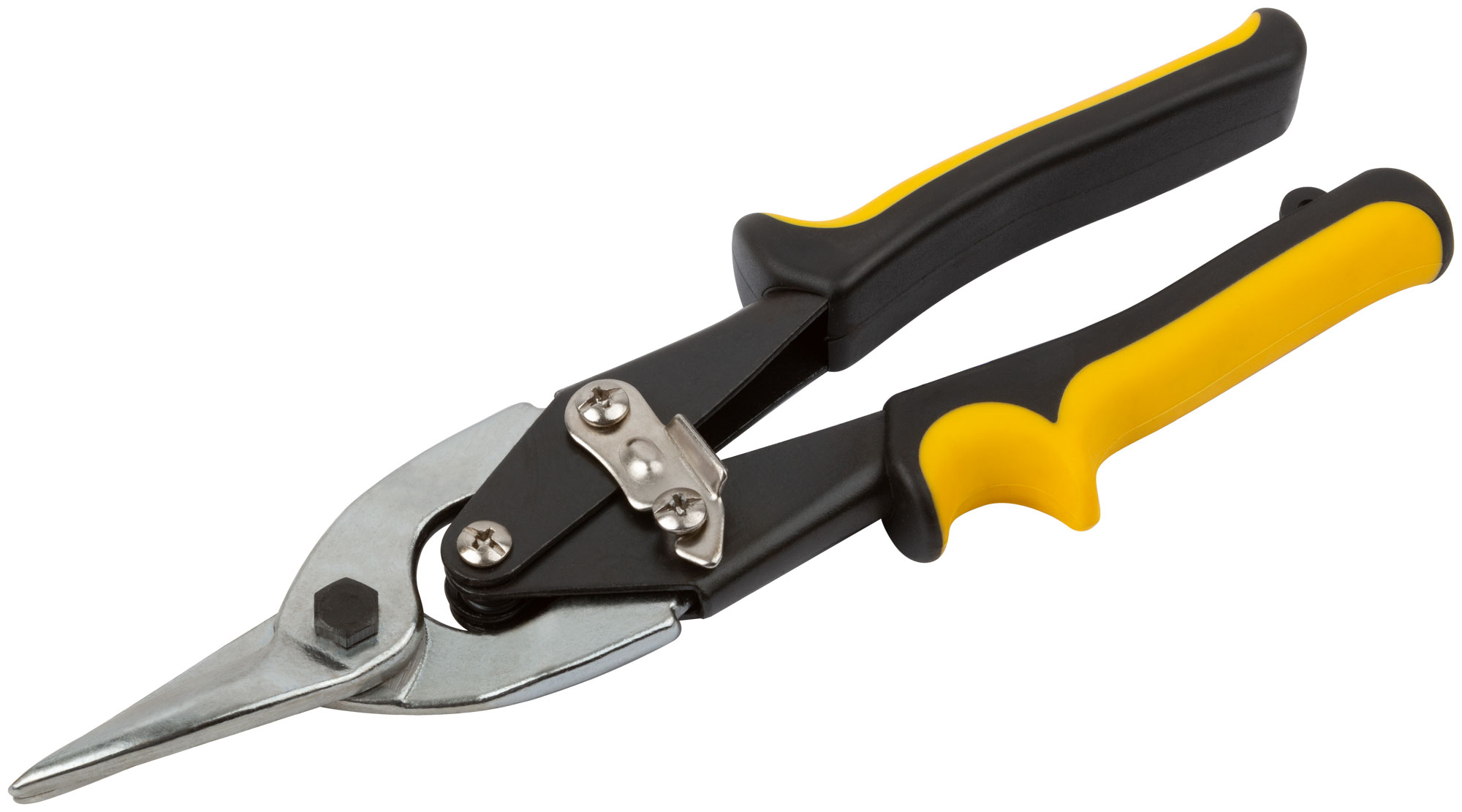 Усиленная пружина. Для резки холоднокатаной стали толщиной до 1 мм и нержавеющей стали толщиной до 0,8 мм. Материал: лезвия из инструментальной стали, прорезиненные эргономичные ручки.
