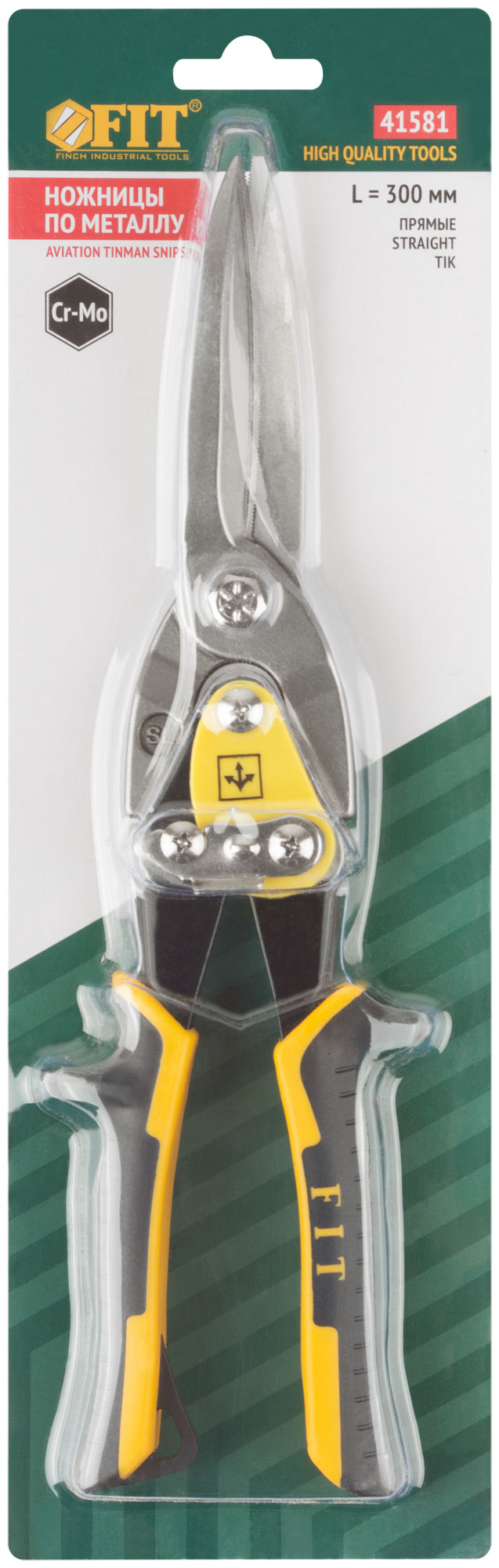 Ножницы по металлу усиленные CrMo Профи, прорезиненные ручки, удлиненные прямые 300 мм