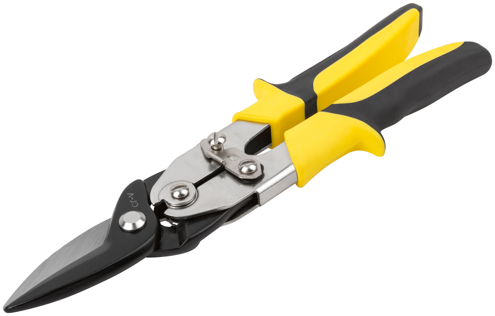 Двойной рычажный механизм. Усиленная конструкция. Для резки холоднокатаной стали до 1,2 мм и нержавеющей стали до 0,8 мм. Материал: лезвия из хром-ванадиевой стали с черным порошковым покрытием, пластиковые ручки с резиновыми вставками. Упаковка: блистер