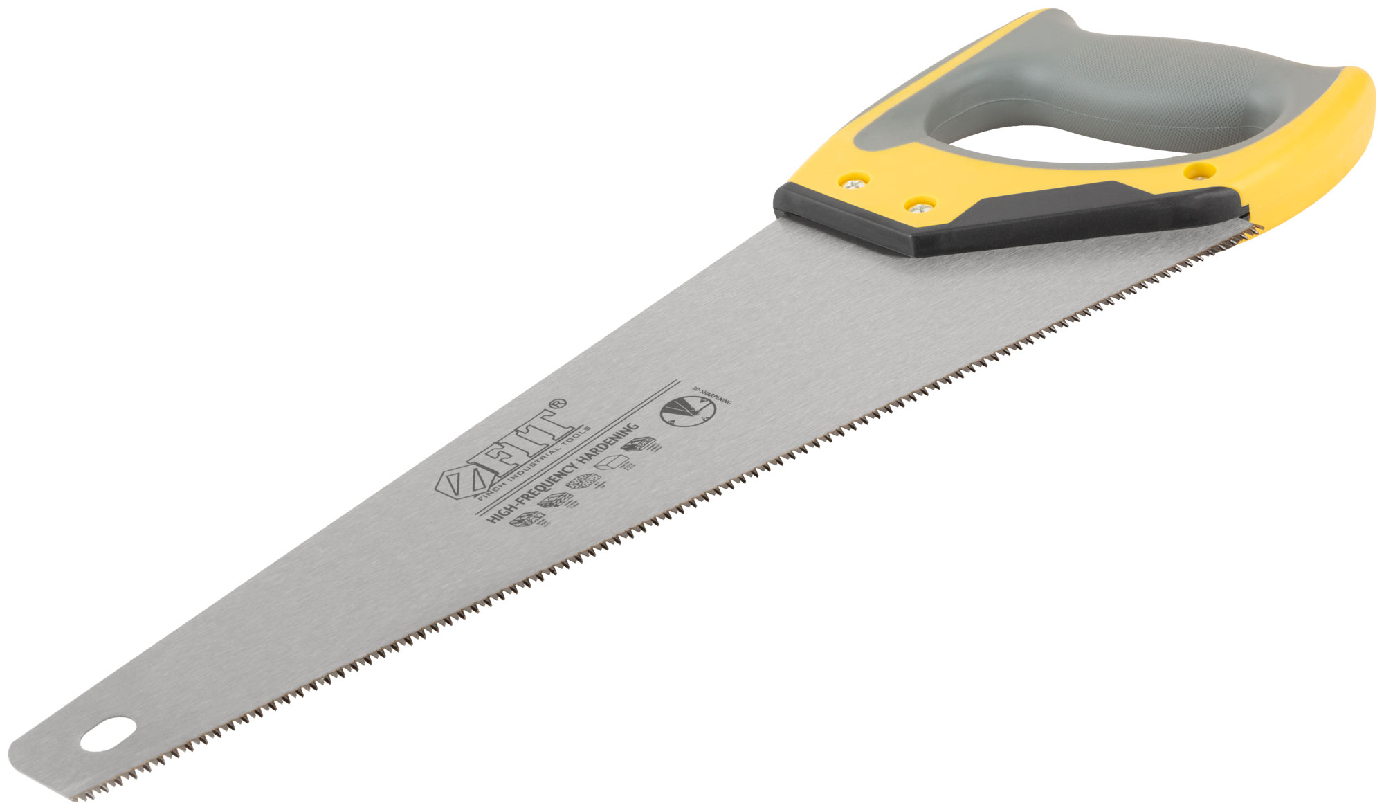 Ножовка по дереву, мелкий каленый зуб 12 ТPI, 3D заточка, 3К пласт.прорезиненная ручка, Профи 400 мм