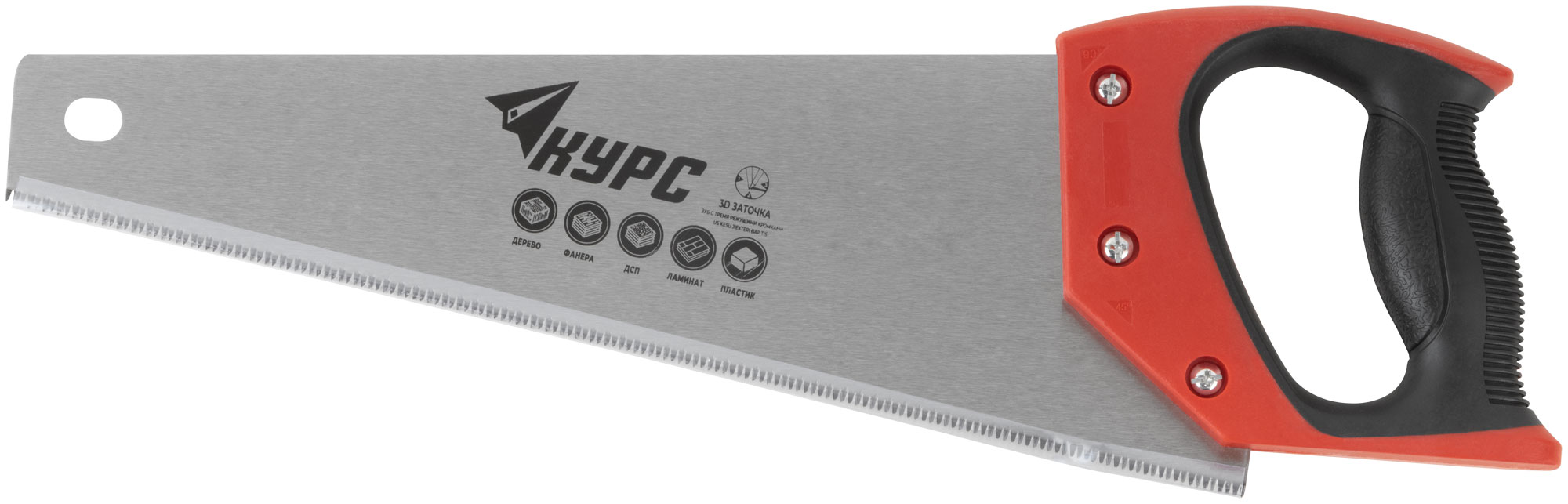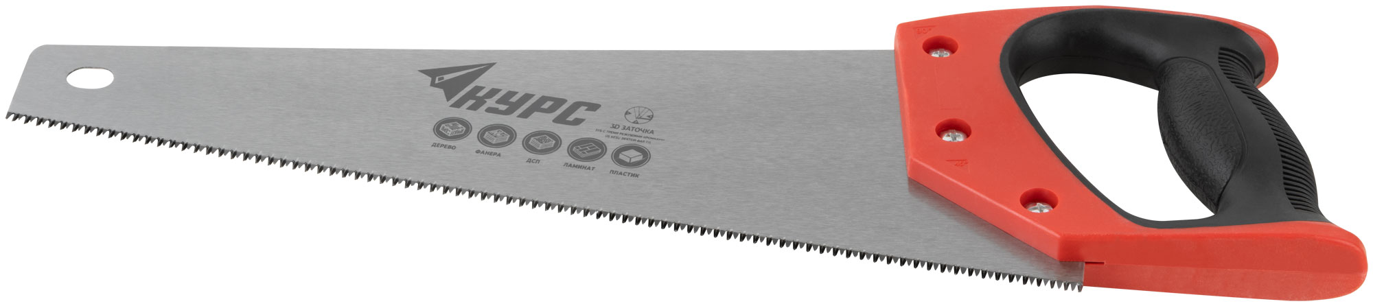 Ножовка по дереву, мелкий каленый зуб 12 ТPI, 3D заточка, пласт.прорезиненная ручка 350 мм