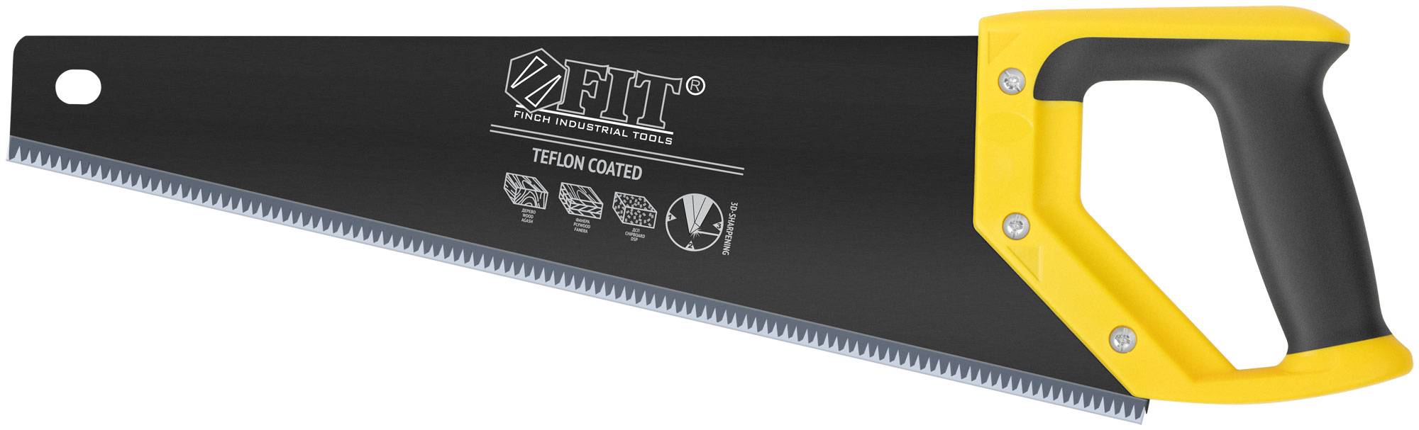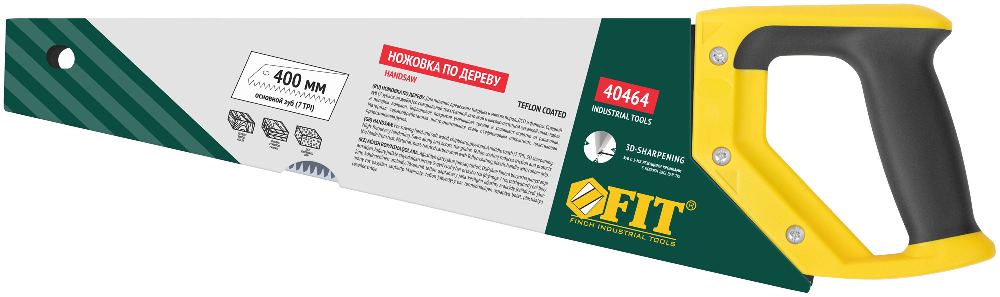 Ножовка по дереву, средн.кален.зуб 7 ТPI, 3D заточка, пласт.прорезинен.ручка, тефлон.покрытие 400 мм