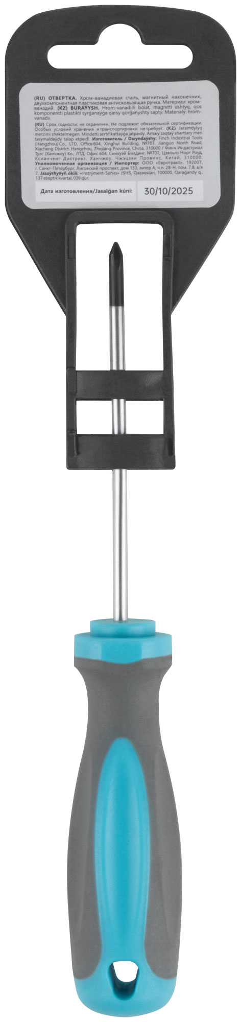 Материал: жало из хром-ванадиевой стали, магнитный наконечник, двухкомпонентная пластиковая антискользящая ручка. Упаковка: пластиковый подвес.