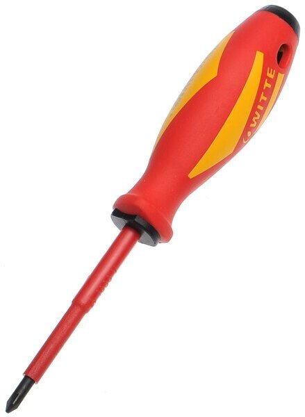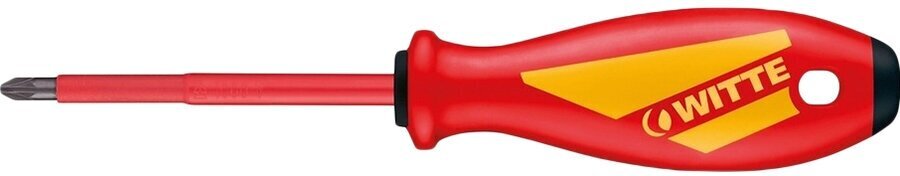 Диэлектрическая отвертка WITTE MAXX VDE крестовая PZ (Pozidriv) - для профессионального использования в области электротехники и электроники. Эргономика, сила и безопасность - по всем этим показателям отвертки MAXX VDE имеют наилучшие характеристики. Каждая отдельная отвертка проходит испытания в воде на пробивную диэлектрическую прочность при напряжении в 10 000 вольт и имеет допуск для работ под напряжением до 1000 вольт. Изоляция отверток MAXX VDE выполняется в соответствии со стандартом DIN ISO EN 60900 С и проходит ударные испытания на холоде при температуре - 40 градусов Цельсия (маркировка C). Дополнительная информацияПреимущества отвертки WITTE MAXX VDE - плавная, продольная форма рукоятки для отличной передачи давления руки, проверенная временем трехгранная форма рукоятки соответствует идеальному углу вращения руки (120 градусов), мягкий материал на ребрах рукоятки удобный для захвата, зона быстрого вращения из мягкого материала делает работу приятной и уверенной, рабочий стержень с защитной изоляцией, изоляция в соответствии с стандартом DIN ISO EN 60900 С, черный рабочий наконечник для максимальной точности. Профиль наконечника - PZ 1, длина стержня - 80 мм, размер рукоятки - 107 х 32 мм.