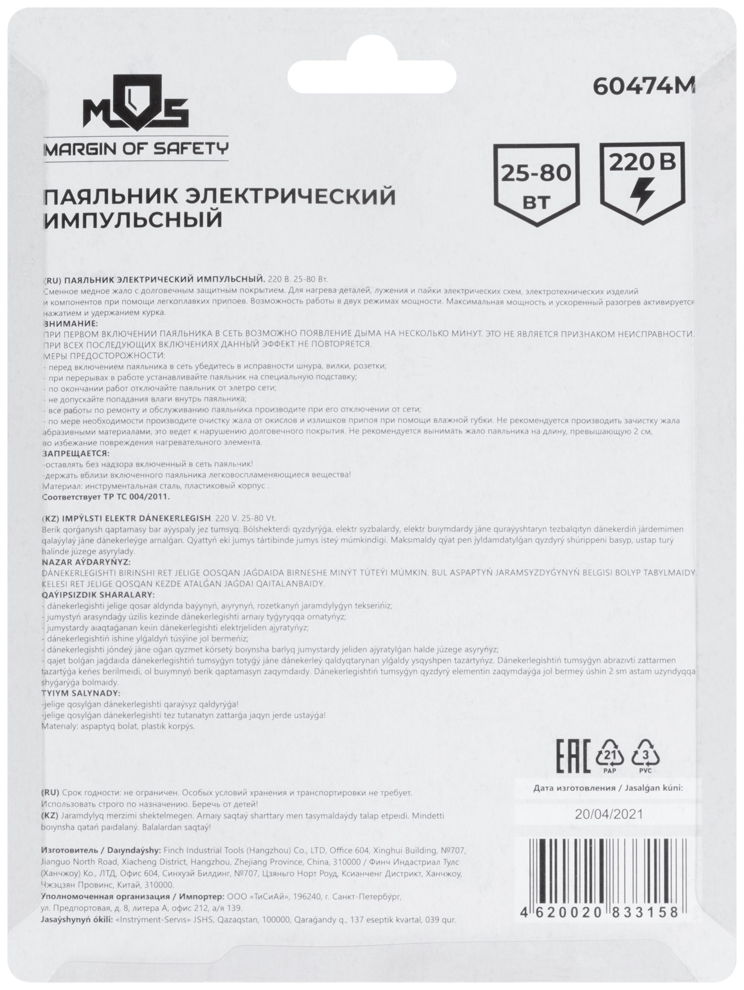 220 В, два режима работы 25/80 Вт. Сменное медное жало с долговечным защитным покрытием. Для нагрева деталей, лужения и пайки электрических схем, электротехнических изделий и компонентов при помощи легкоплавких припоев. Паяльник работает в двух режимах мощности. При отпущеной кнопке (курке) паяльник работает в режиме 25 Вт. Нажатие и удержание кнопки (курка) активирует режим 80 Вт.Материал: инструментальная сталь, пластиковый корпус. Упаковка: блистер.