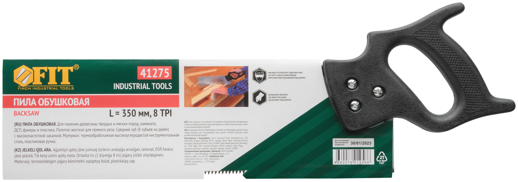 8 ТPI. Закаленные зубья. Полотно закалено, жесткое для прямого реза. Материал: полотно из высокоуглеродистой стали, пластиковая ручка.
