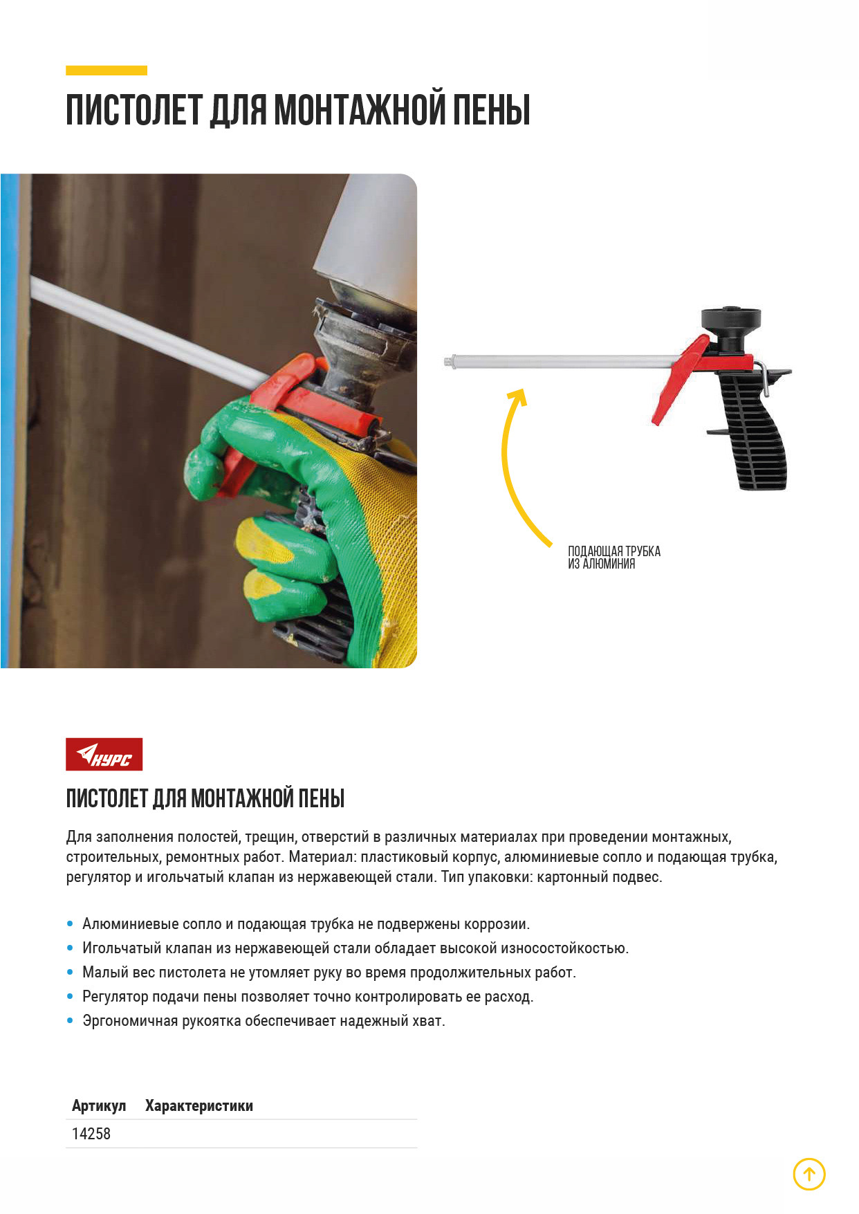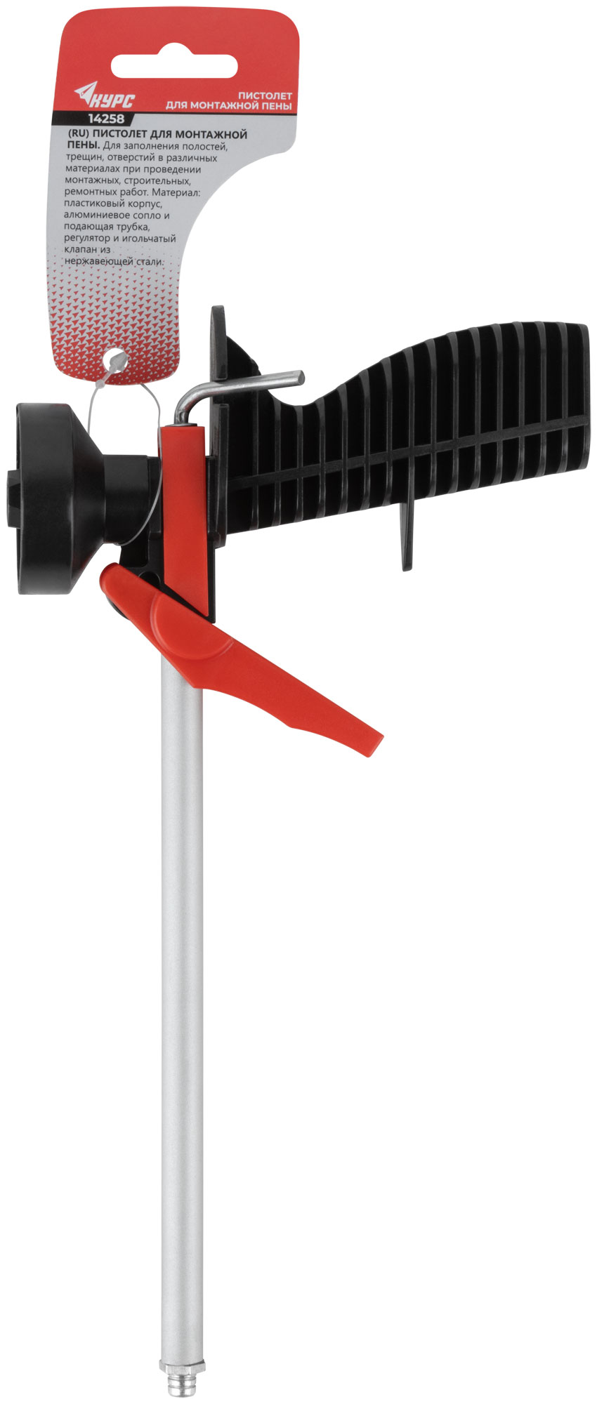 Для заполнения полостей, трещин, отверстий в различных материалах при проведении монтажных, строительных, ремонтных работ. Материал: пластиковый корпус, алюминиевые сопло и подающая трубка, регулятор и игольчатый клапан из нержавеющей стали. Упаковка: картонный подвес.