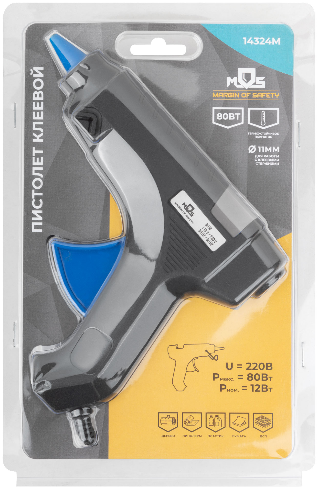 220 В. Для склеивания дерева, бумаги, ДСП, линолеума и пластика. Используется с клеевым стержнем. Материал: пластиковый корпус, термостойкая резина, алюминиевый сплав. Упаковка: блистер.