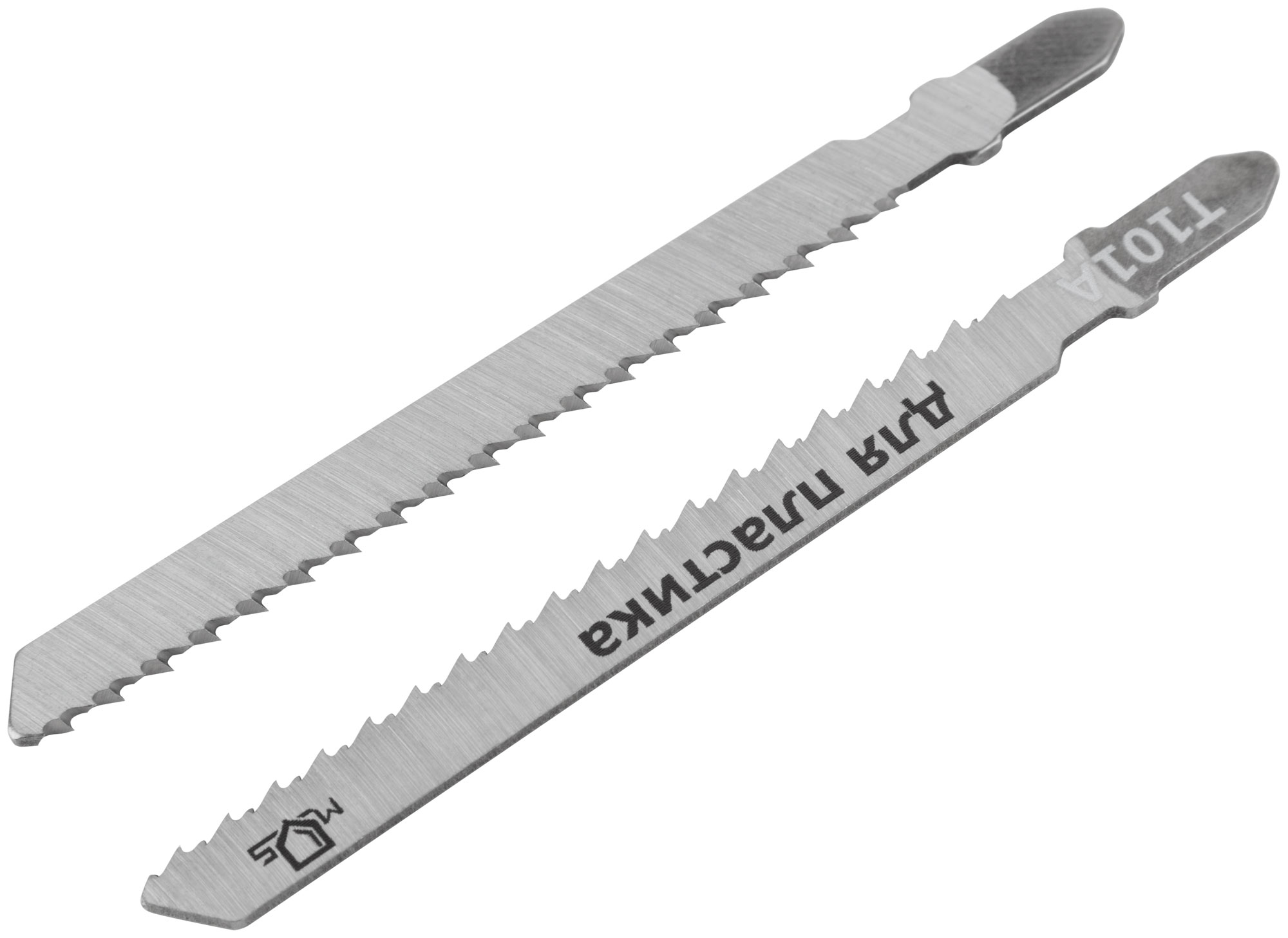 Т101A. Набор 2 шт. Зубья: шлифованные. Прямой чистый рез. Для резки пластика, древесных материалов. Т-образный хвостовик. Материал: сталь65MN. Упаковка: пакет с подвесом.